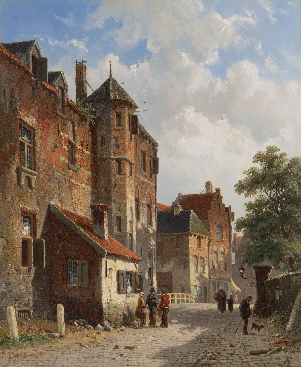 Adrianus Eversen kunstwerk • schilderij • voorheen te koop Zonovergoten Hollands straatje