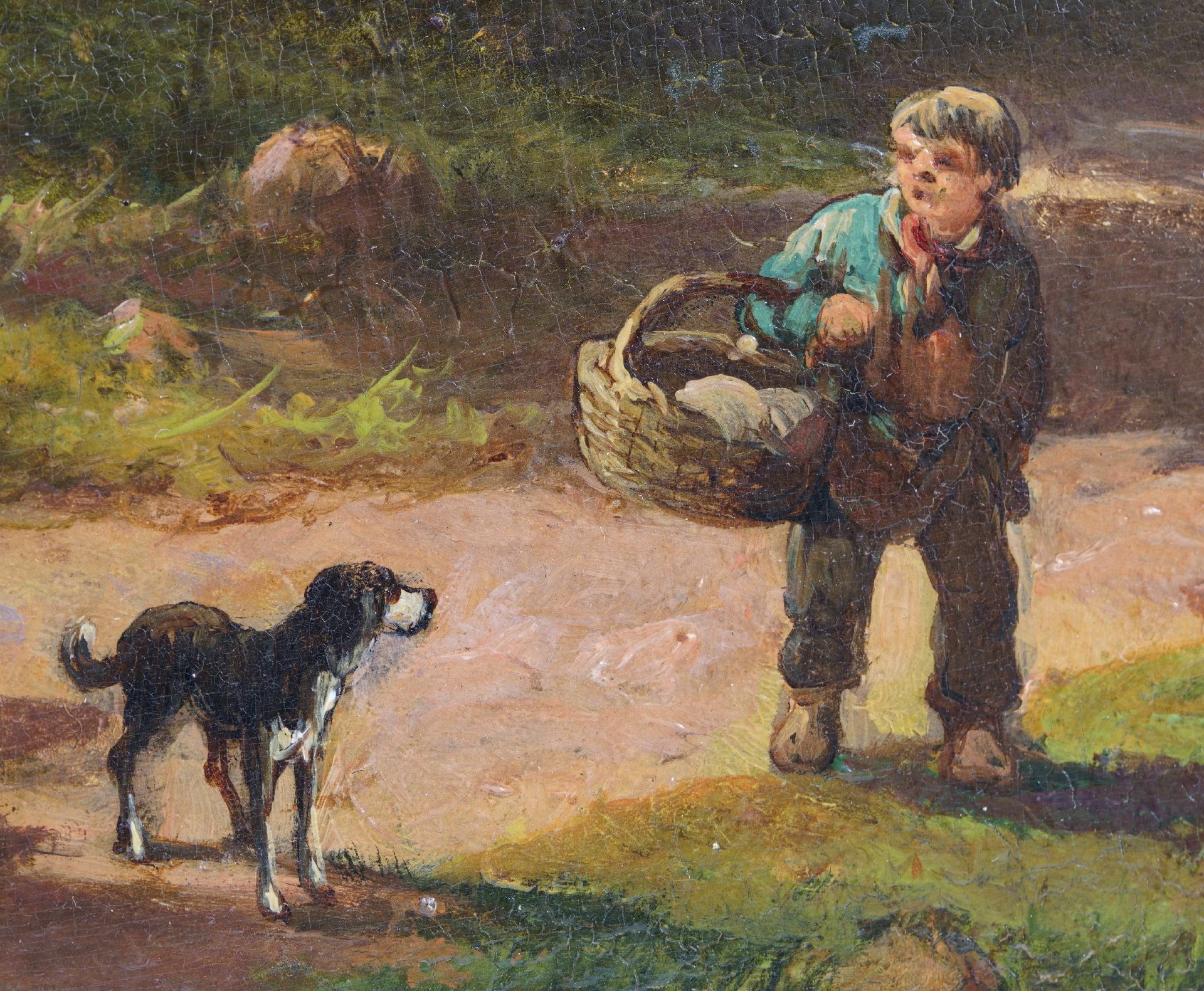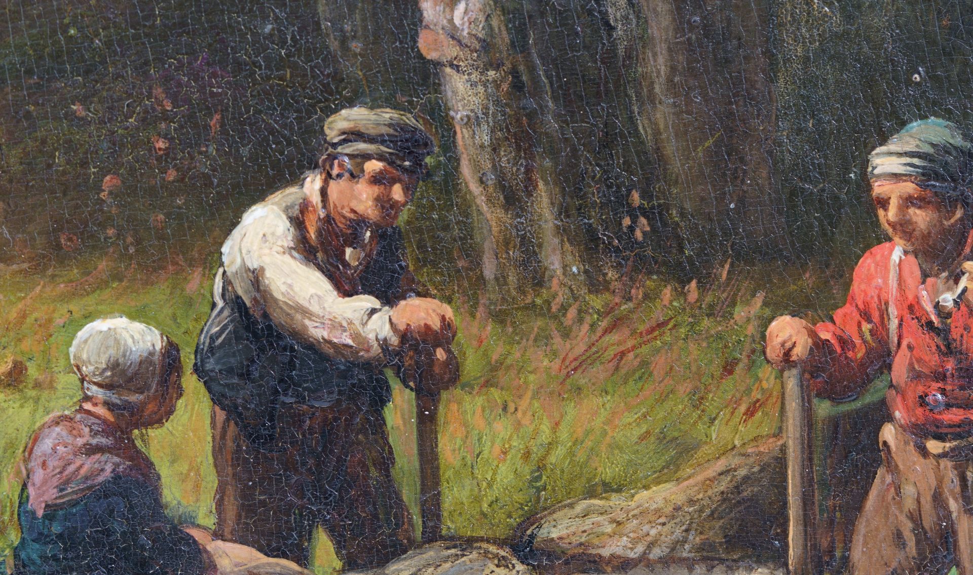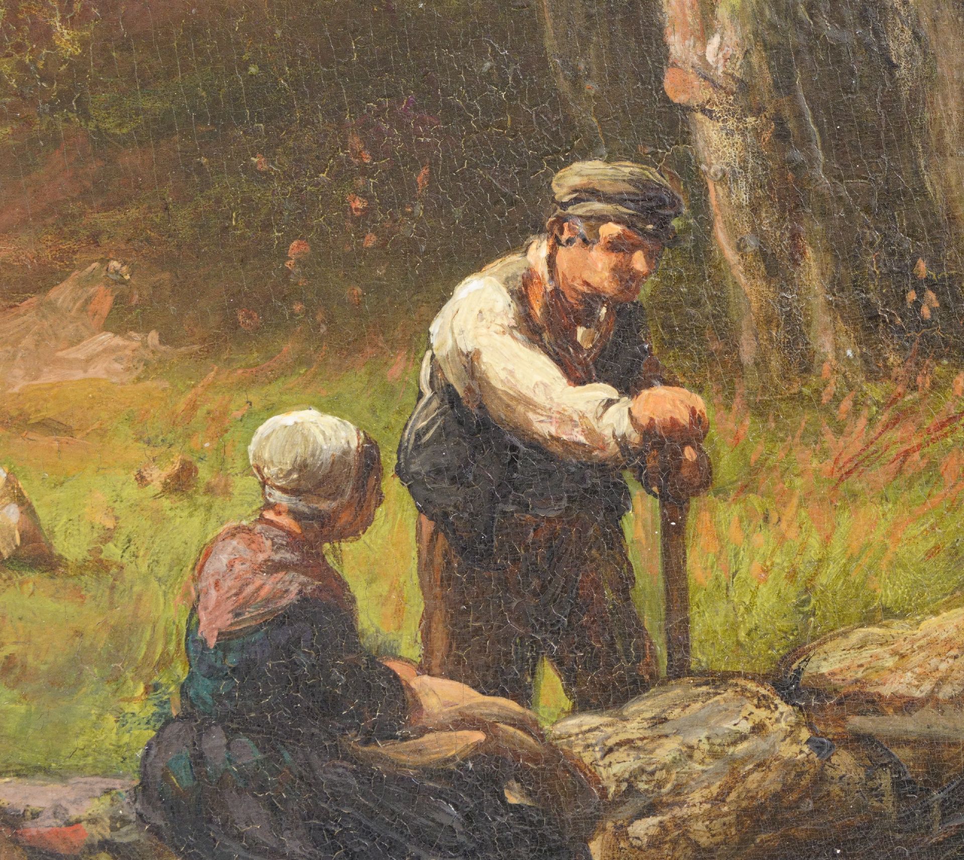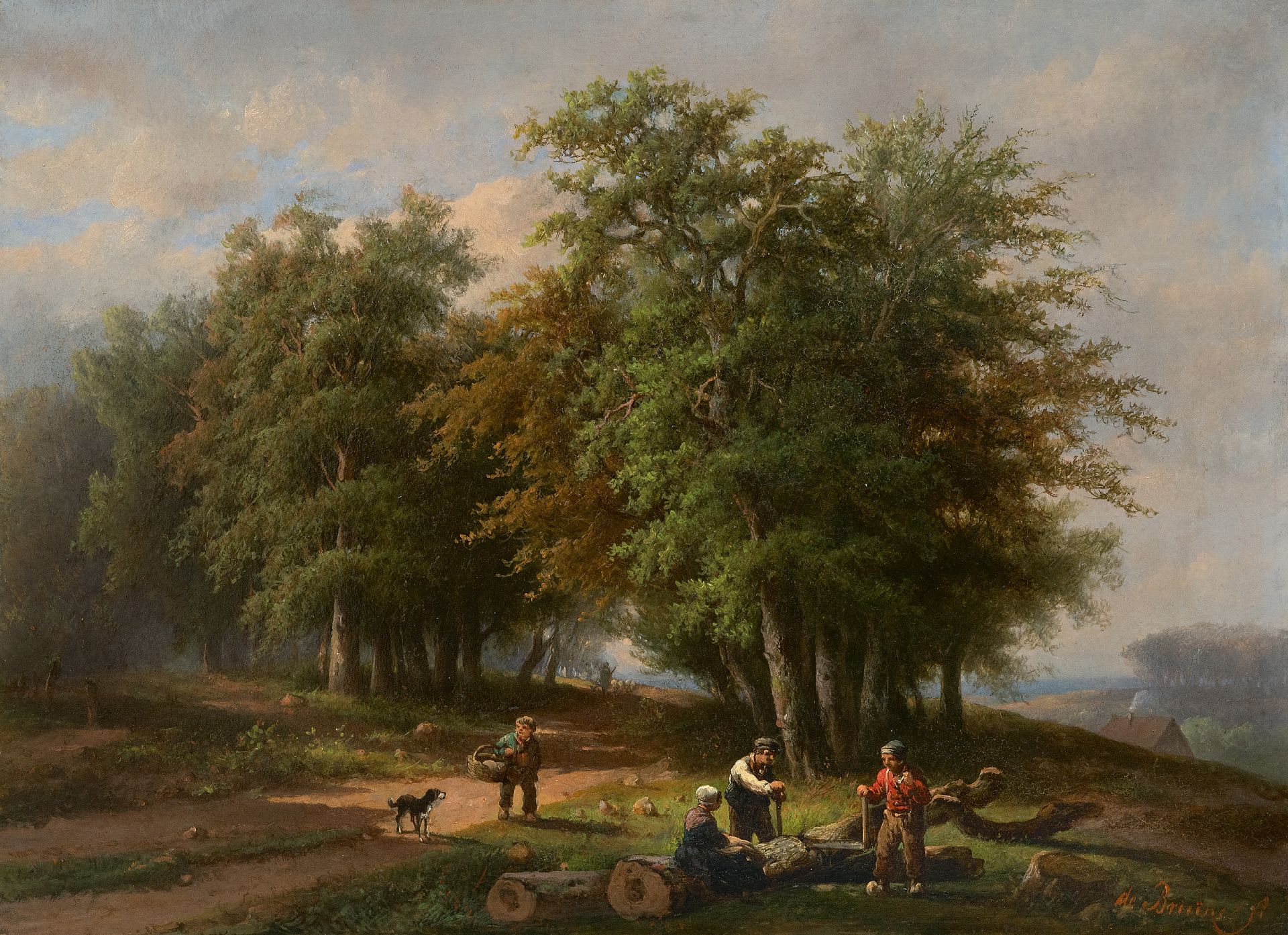 Adrianus Hendrikus de Bruïne kunstwerk • schilderij • te koop Houthakkers en landvolk op een bospad