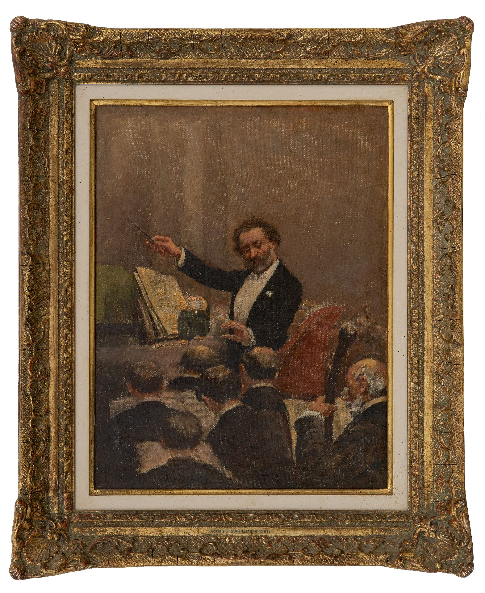 Adrien-Emmanuel Marie werd in 1848 geboren in het Franse Neuilly-sur-Seine. Hij bezocht de Ecole des Beaux-Arts in Parijs en werd beroemd als schilder en illustrator. Vanaf de jaren ’80 was hij als vaste medewerker verbonden aan de weekbladen 'Le Monde Illustré' en 'La Chronique Illustrée', die de Parijse ‘beau monde’ voorzagen van informatie. Op 22 maart 1880 dirigeerde Verdi voor de eerste keer een voorstelling van zijn opera Aïda in de Opéra Garnier. Een hele gebeurtenis, want tot dan toe had de componist geweigerd om in dit gebouw op te treden. Het werd een groot succes en de kranten stonden er bol van. Adrien Marie maakte schetsen van de kostuums en van Verdi in de orkestbak, omringd door de musici. Ze dienden als voorbeeld voor dit schilderij, evenals voor de omslagillustratie van Le Monde Illustré van 3 april 1880.