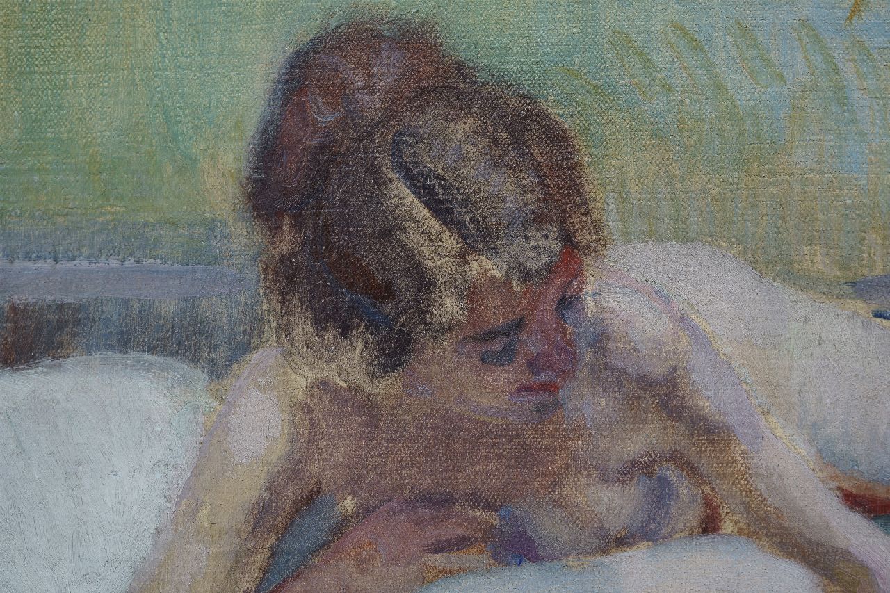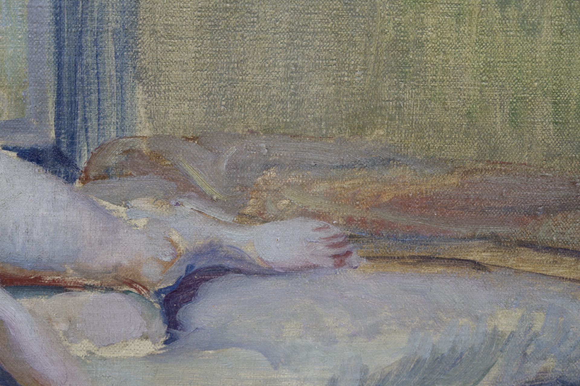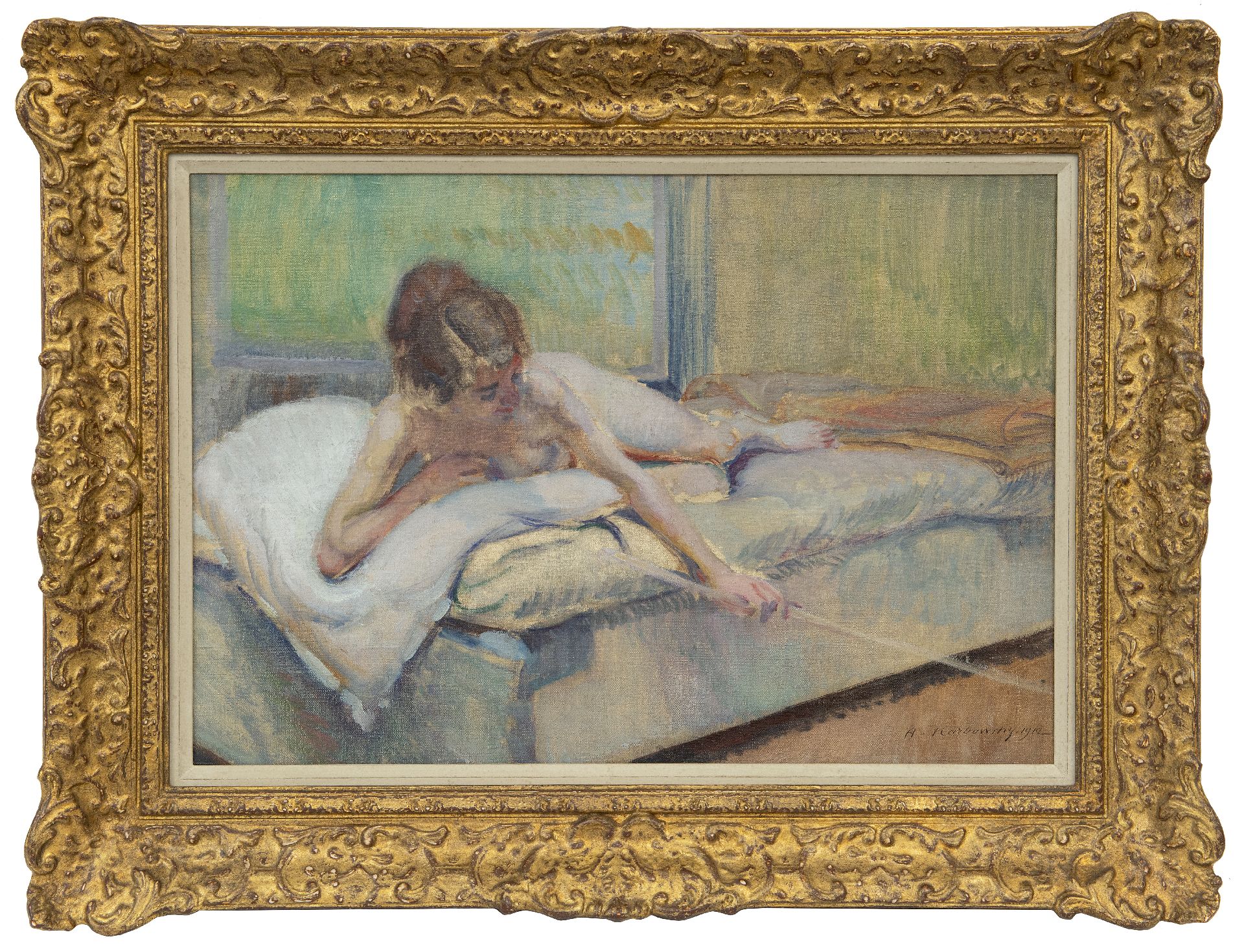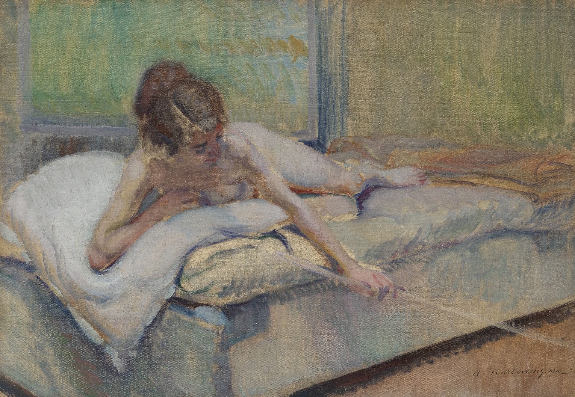 Adrien Karbowsky kunstwerk • schilderij • voorheen te koop Vrouwelijk naakt op een bed