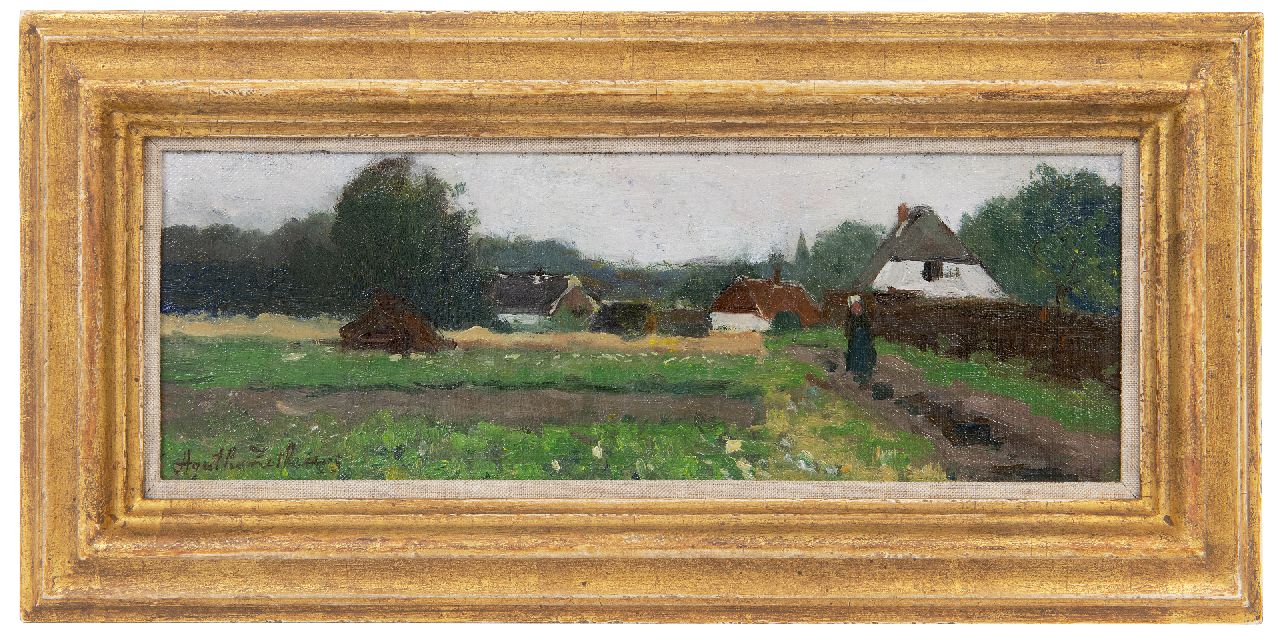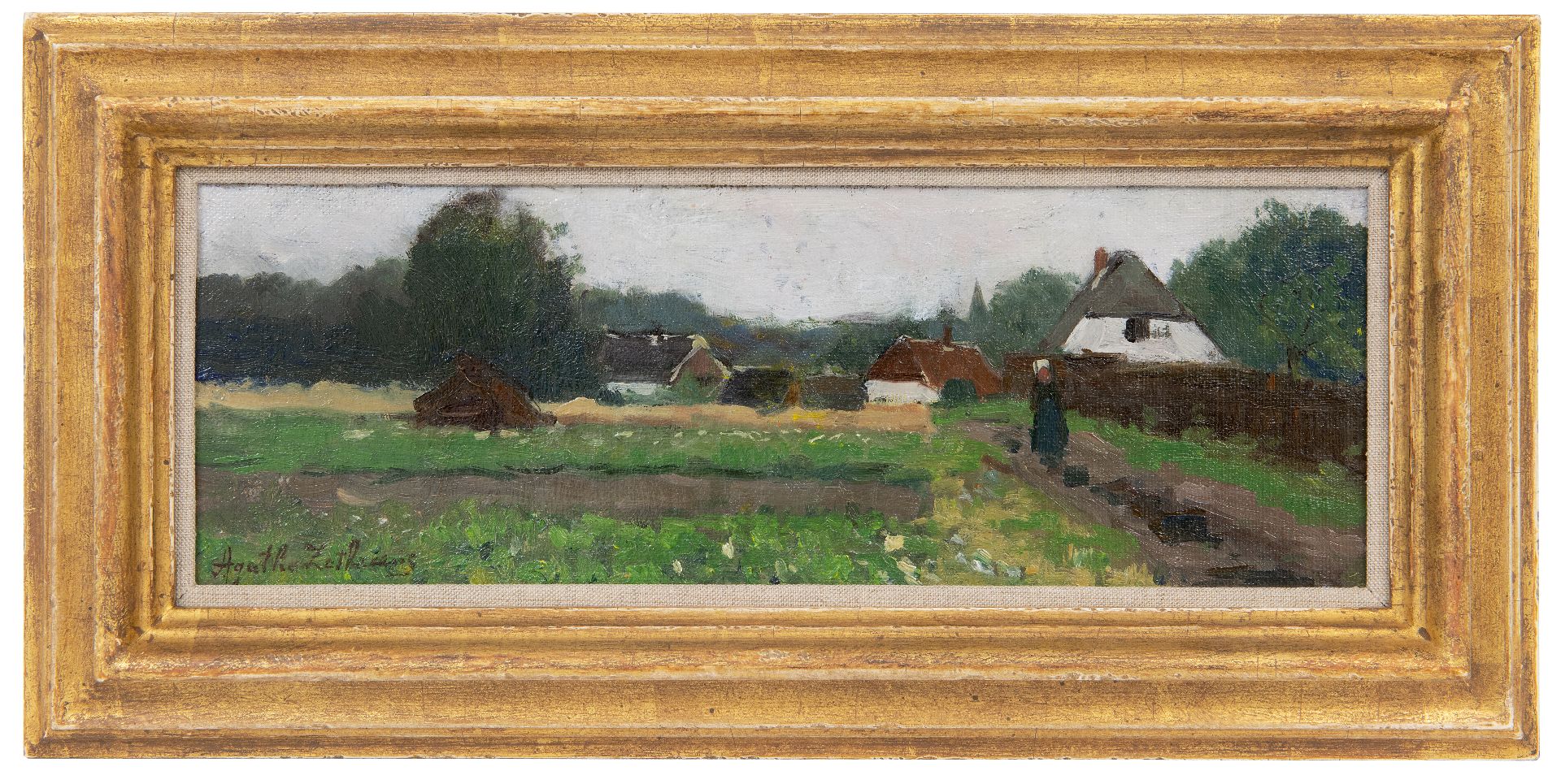 Agatha Zethraeus kunstwerk • schilderij • te koop Dorpsgezicht met boerderij
