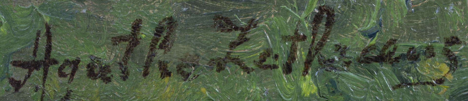 olieverf op doek op board 12,7 x 34,8 cm, gesigneerd linksonder