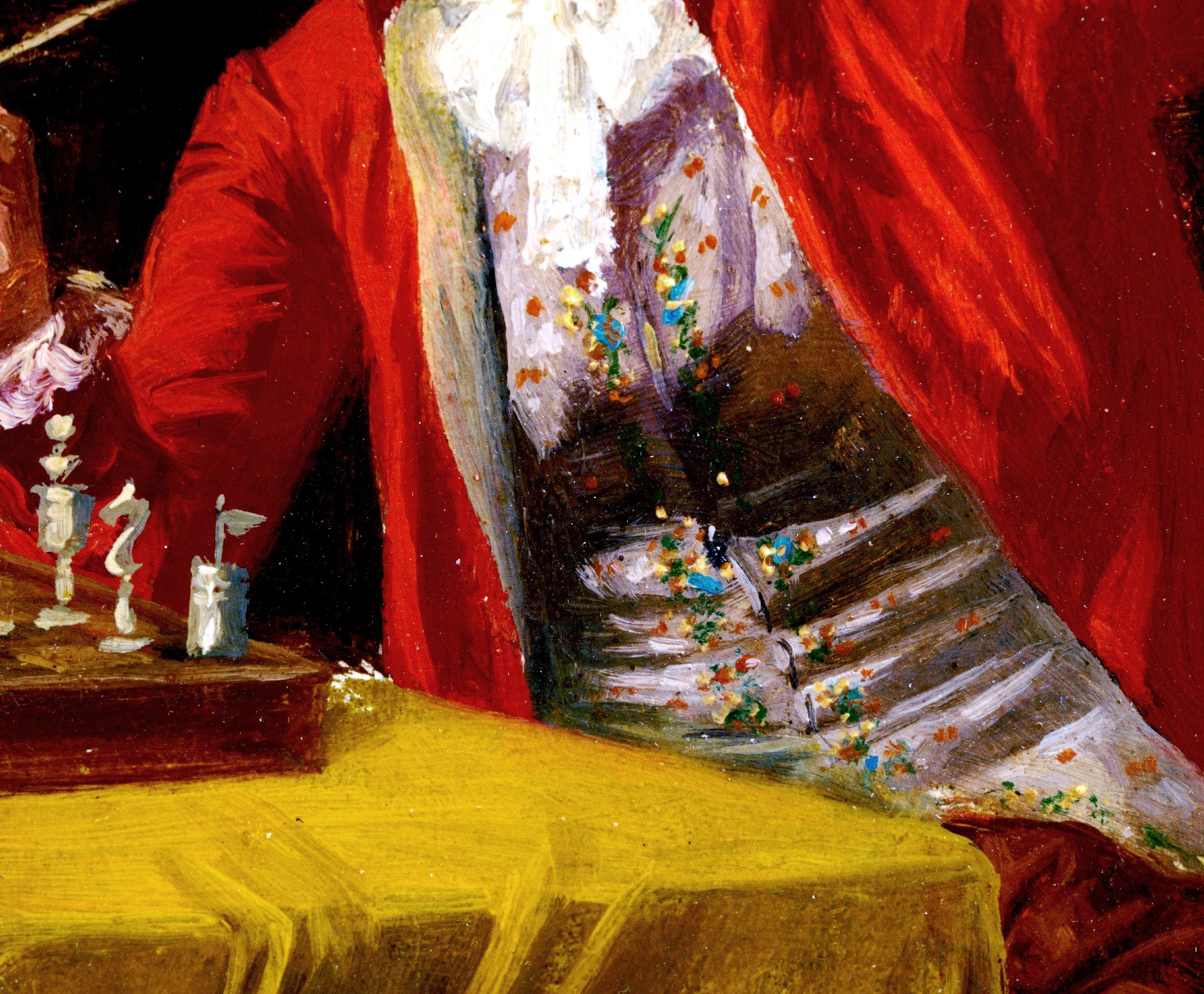 Franke A.J.  | Albert Joseph Franke | Schilderijen te koop aangeboden | Een spannende schaakpartij, olieverf op paneel 40,1 x 29,6 cm, gesigneerd linksonder