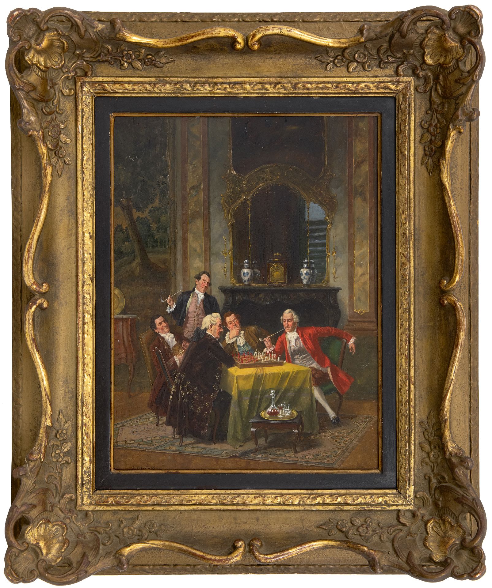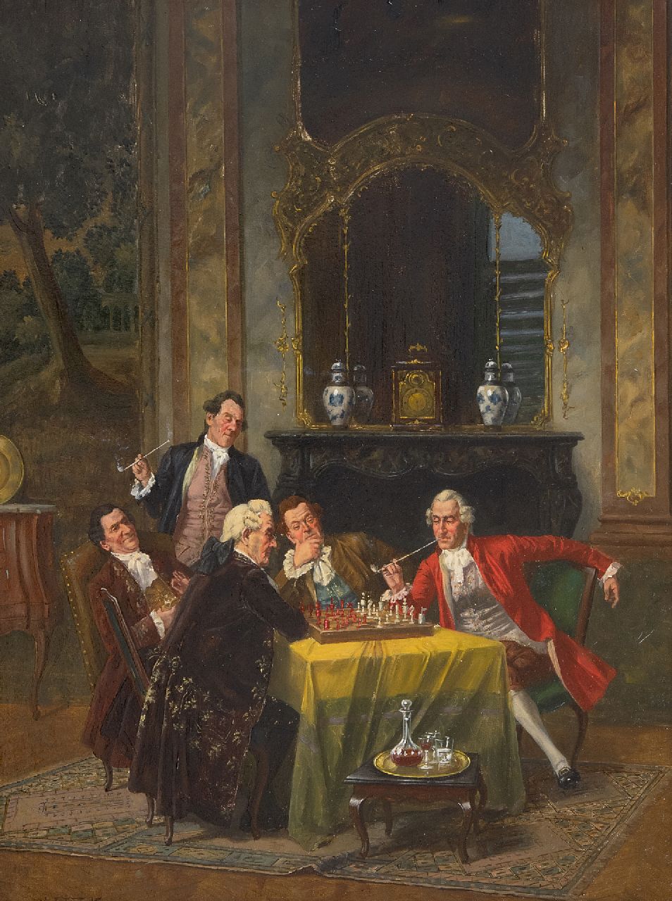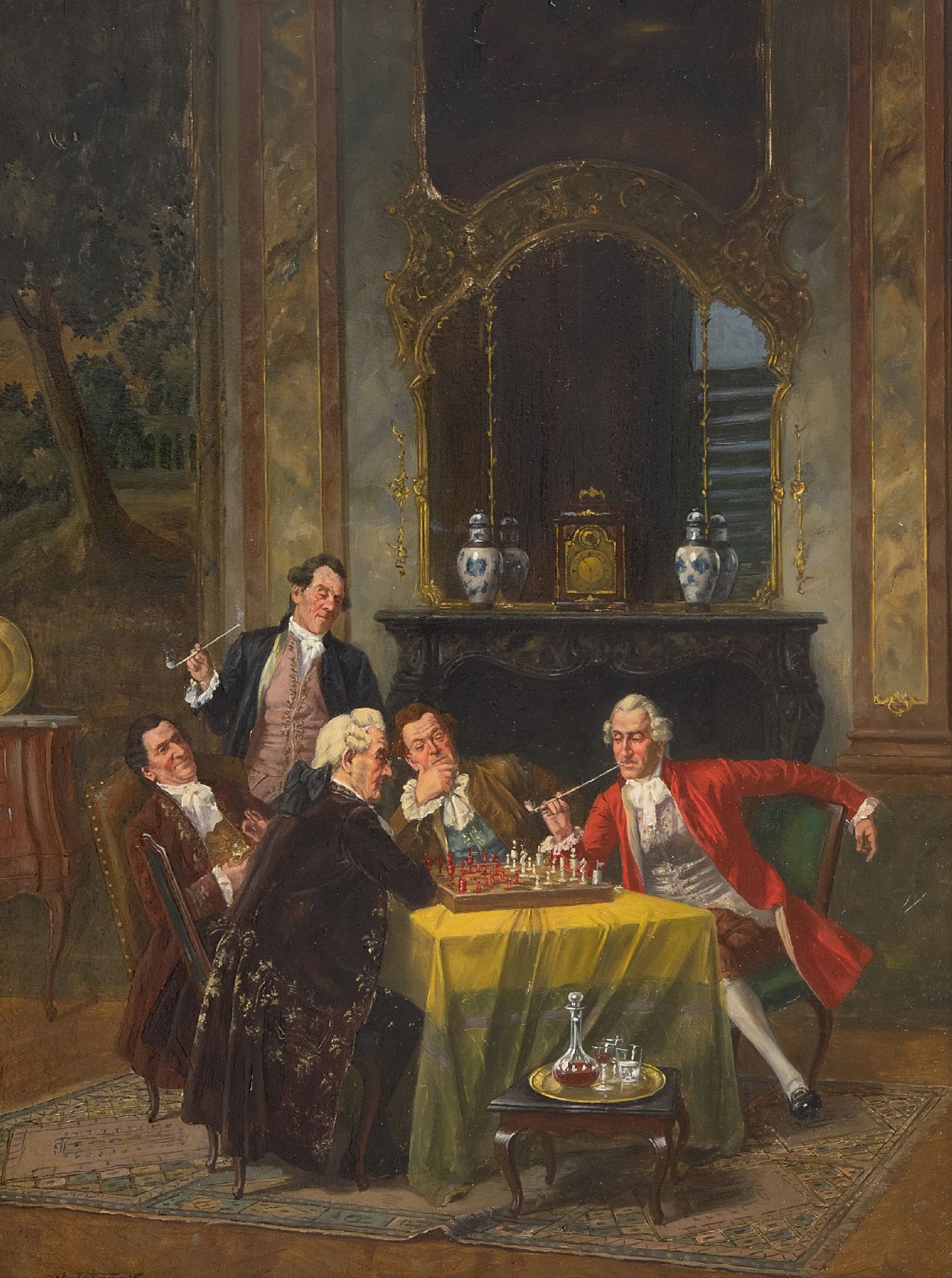 Albert Franke kunstwerk • schilderij • te koop Een spannende schaakpartij