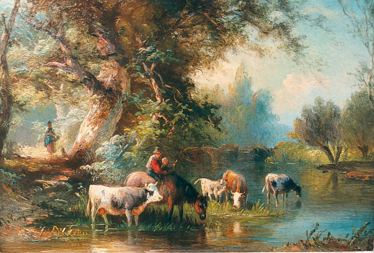 Albert Jurardus van Prooijen kunstwerk • schilderij • voorheen te koop Drinkend vee