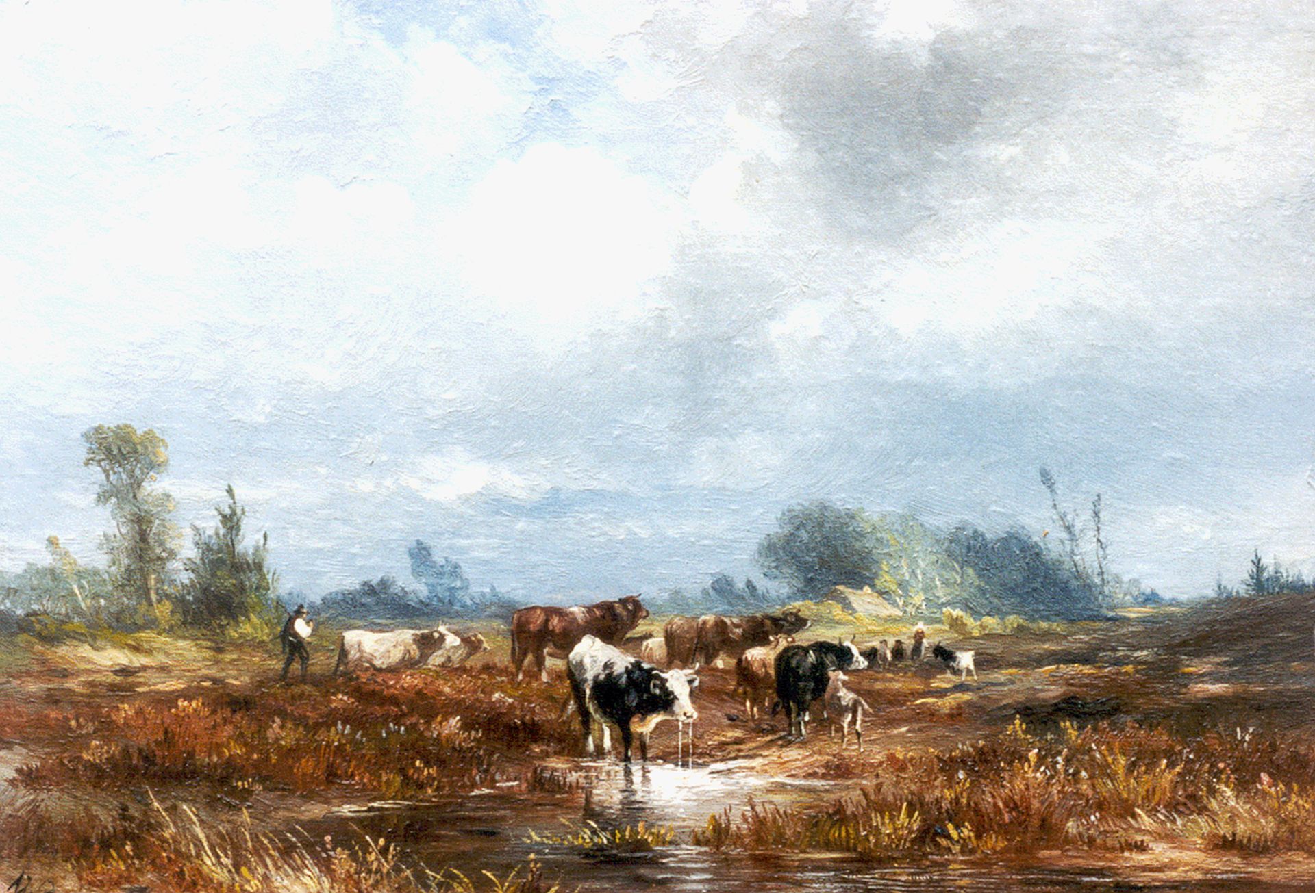 Albert Jurardus van Prooijen kunstwerk • schilderij • voorheen te koop Heidelandschap met herders en vee