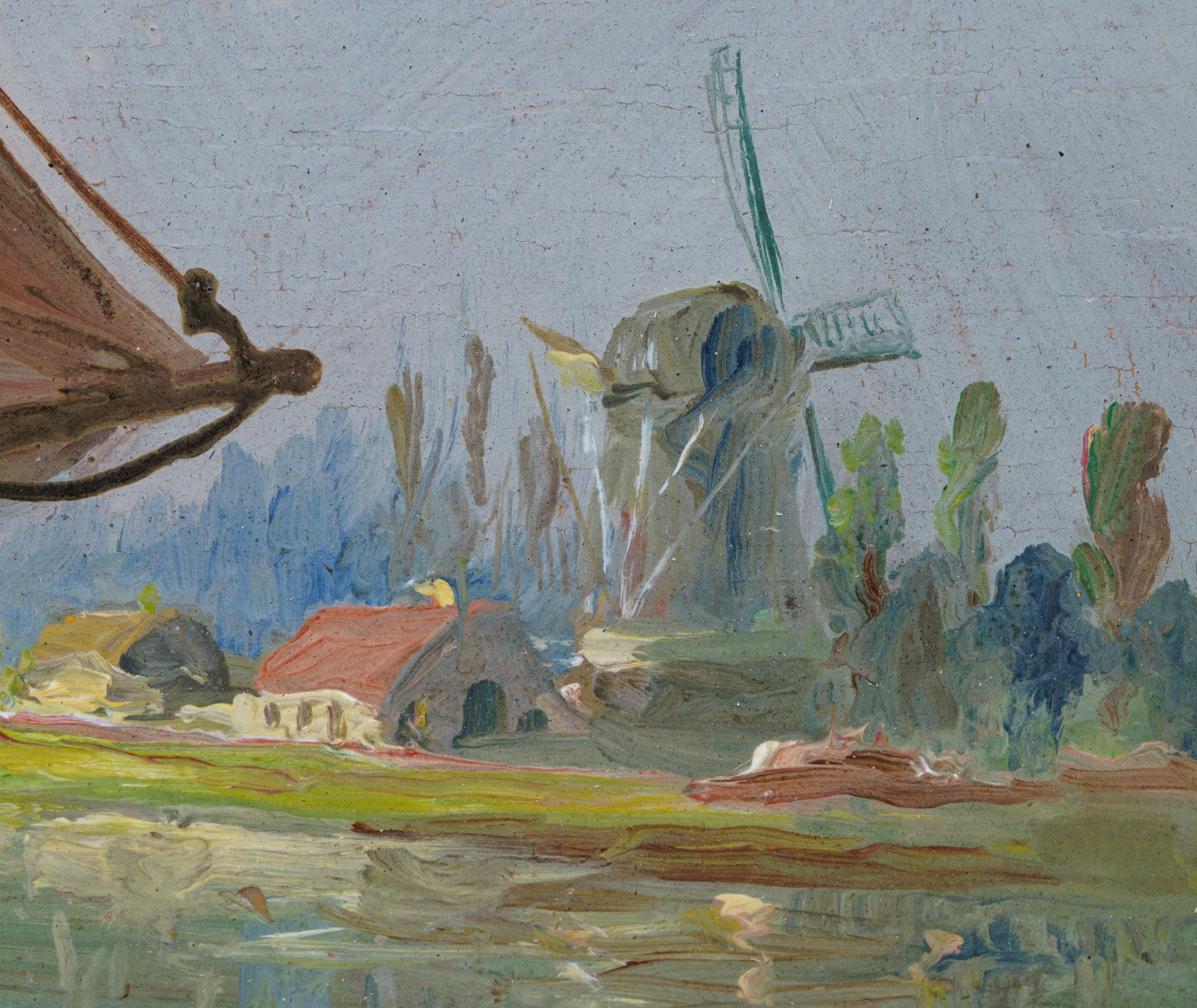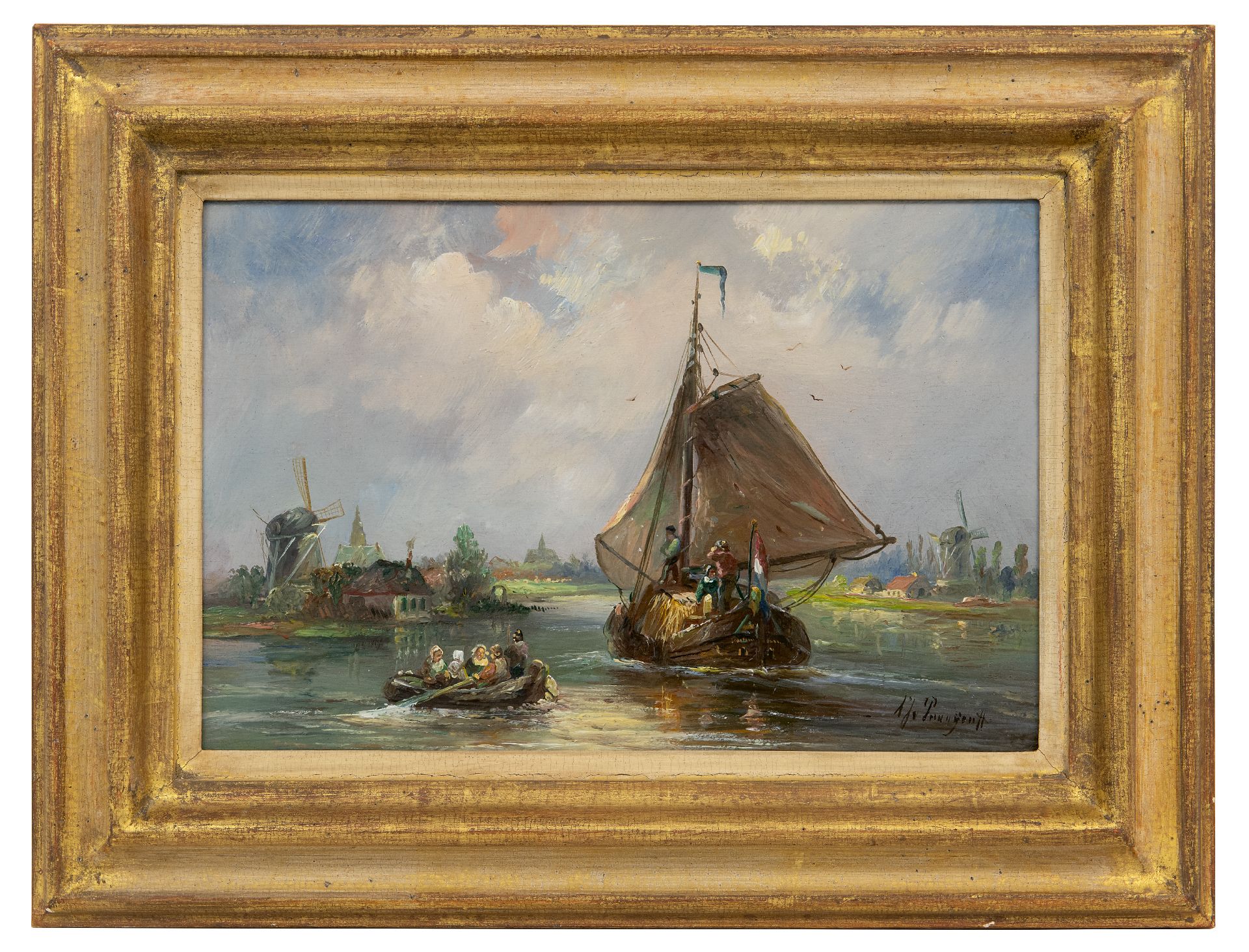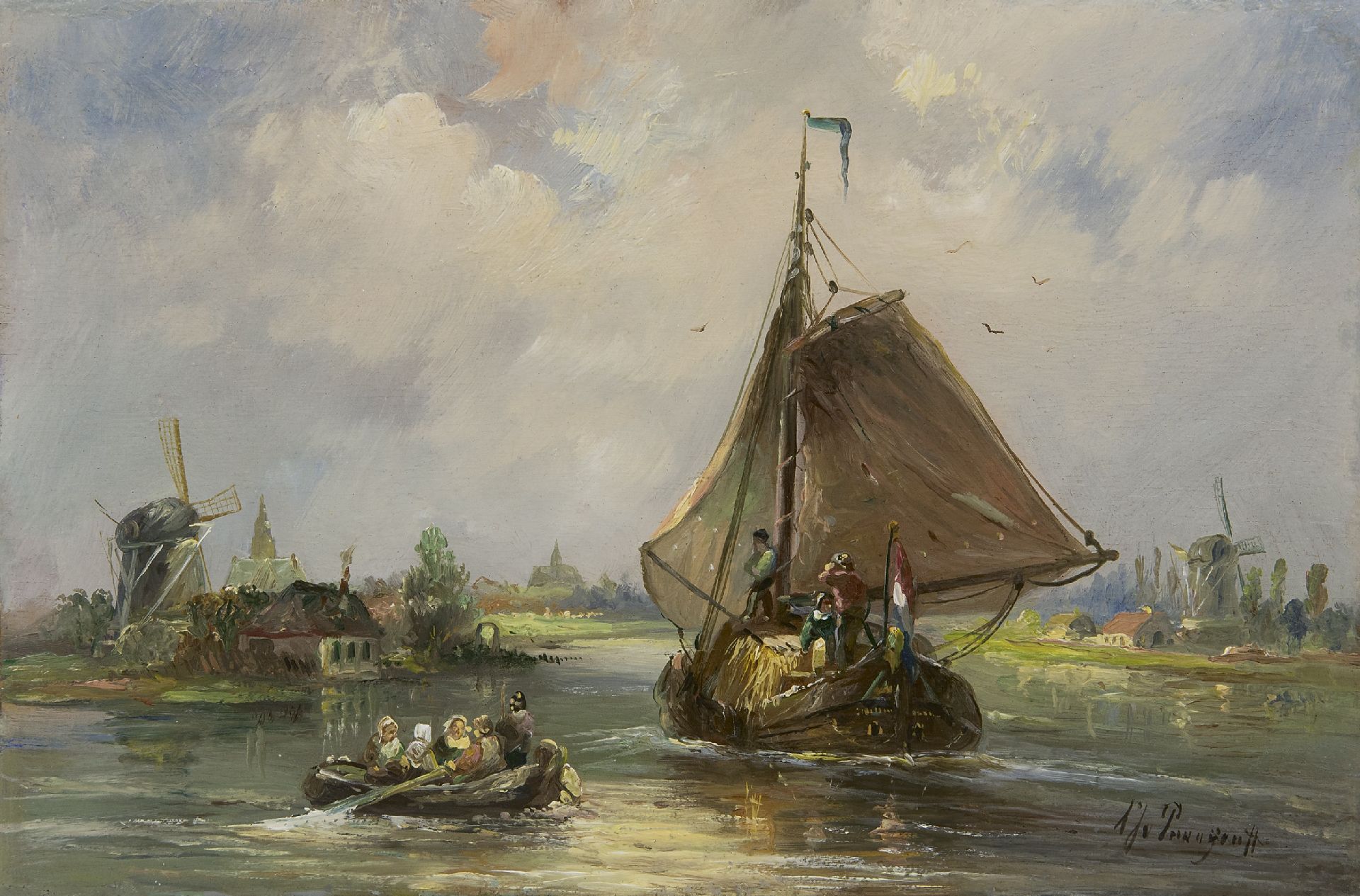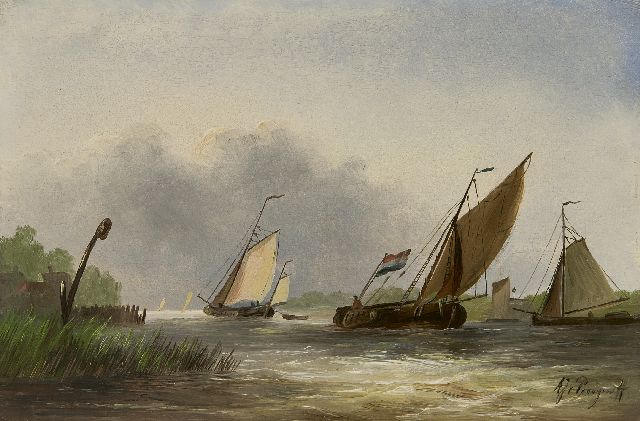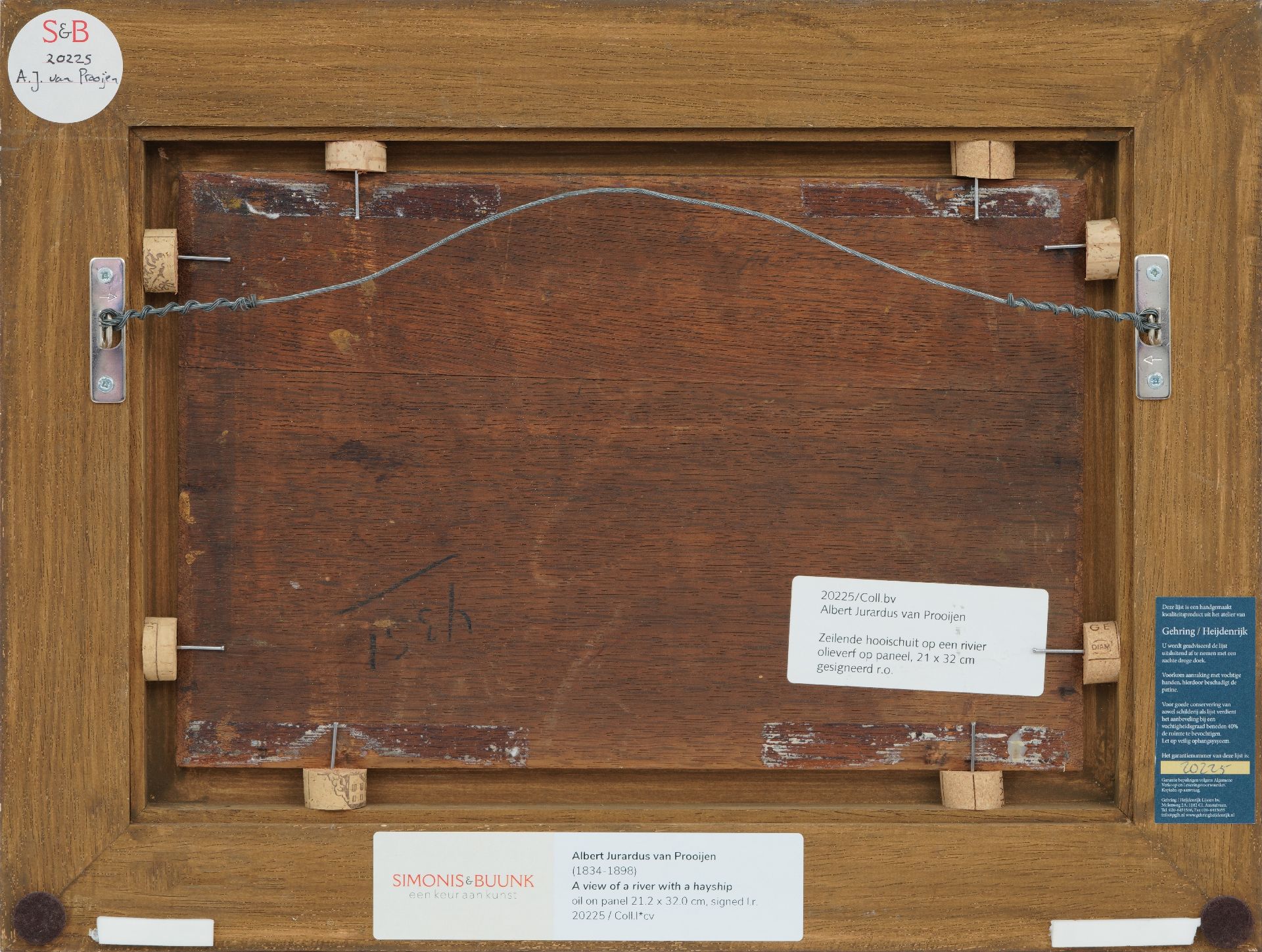 Albert Jurardus van Prooijen kunstwerk • schilderij • te koop Riviergezicht met zeilende hooitjalk