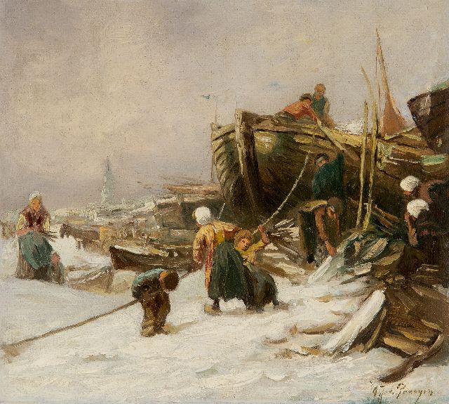 Albert Jurardus van Prooijen | Winter op het strand, olieverf op doek op paneel, 21,1 x 22,8 cm, gesigneerd r.o.