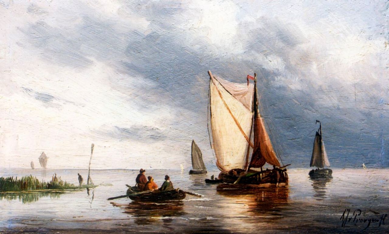 Albert Jurardus van Prooijen kunstwerk • schilderij • voorheen te koop Schepen bij rustig weer