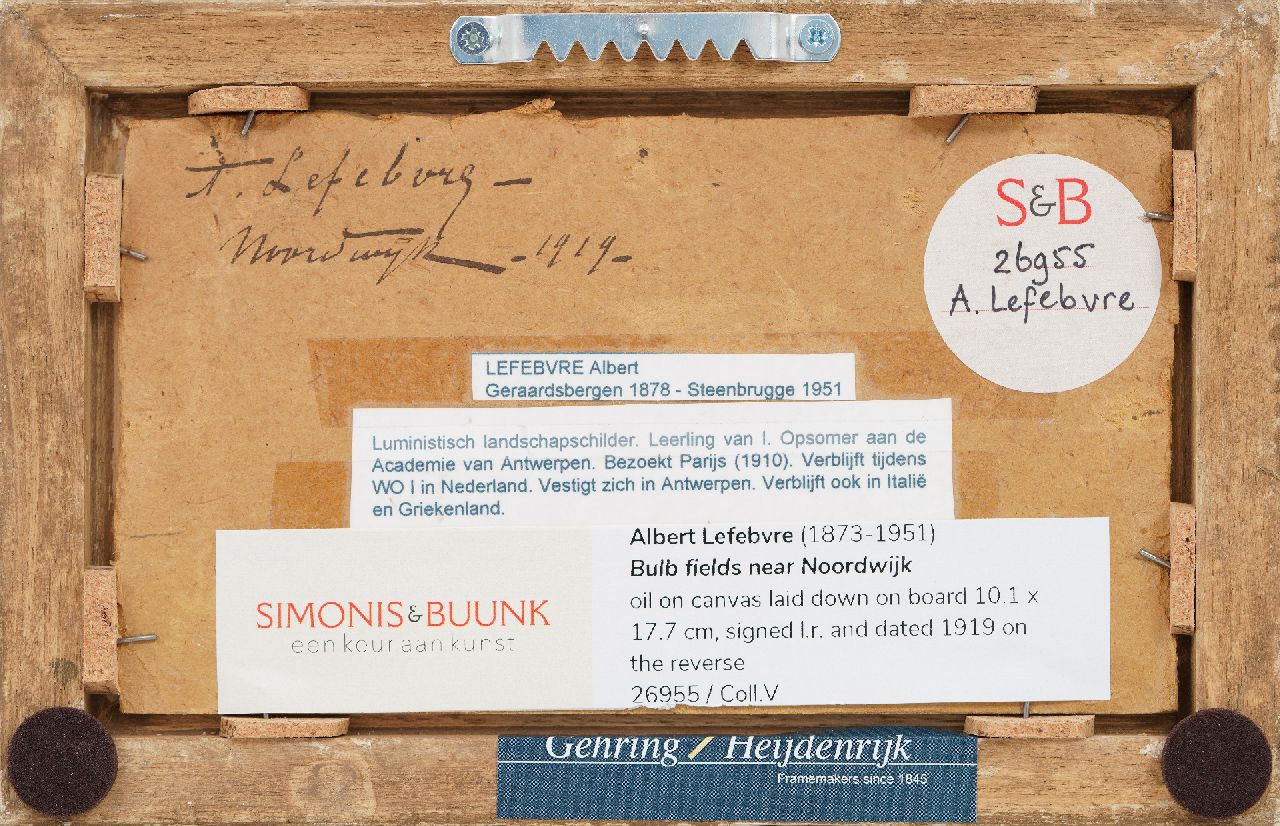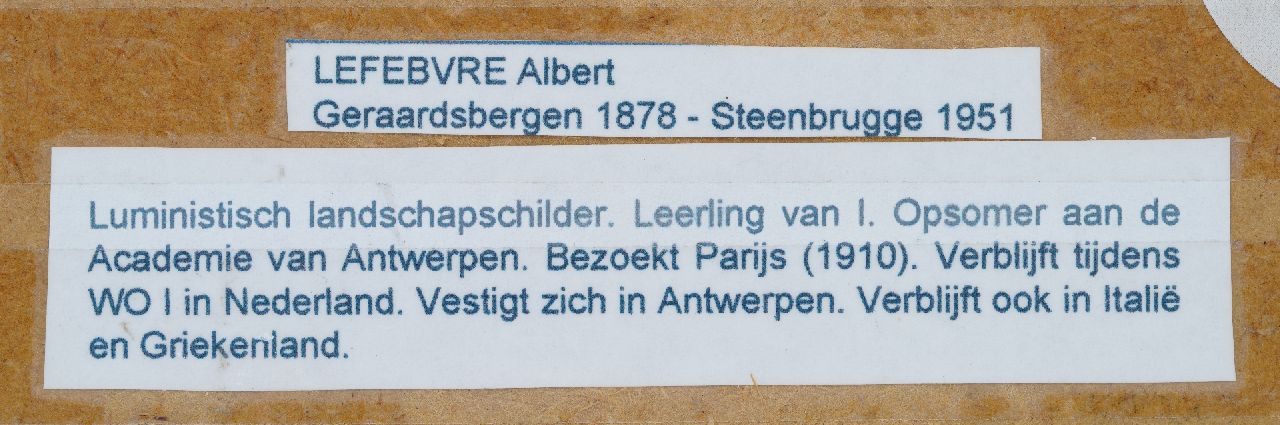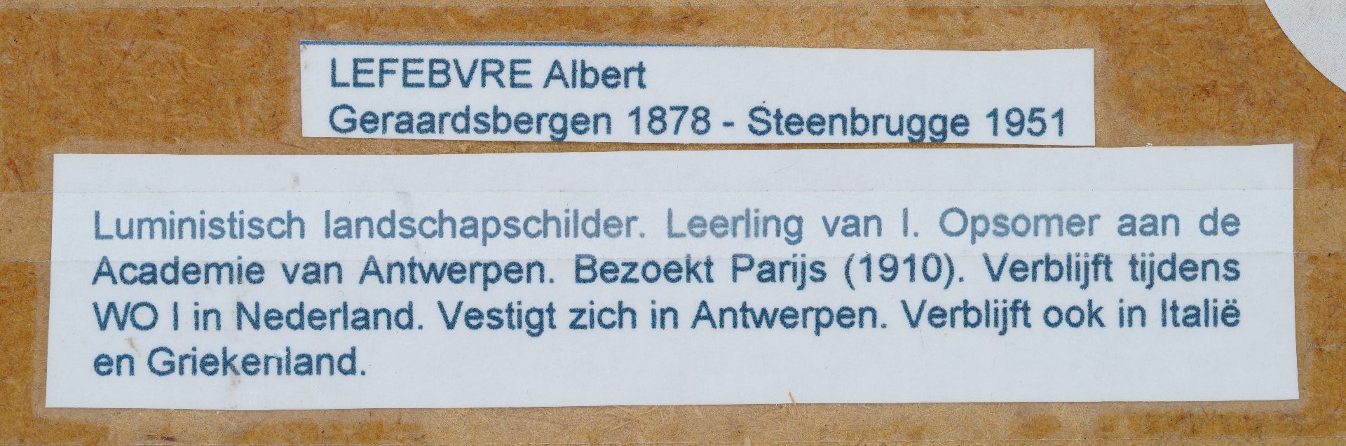 De Belgische kunstenaar Albert Lefebvre volgde een opleiding aan de academie in Antwerpen. In 1910 maakte hij een studiereis naar Parijs, later naar Rome en Athene. Hij zou daarna nog regelmatig naar Italië en Griekenland terugkeren. Gedurende de Eerste Wereldoorlog verbleef hij in Nederland, onder meer in Noordwijk, waar hij zich door het kustlandschap en de nabijgelegen bollenvelden bij Lisse en Hillegom liet inspireren. Lefebvre schilderde voornamelijk landschappen, in een impressionistische tot luministische stijl.
