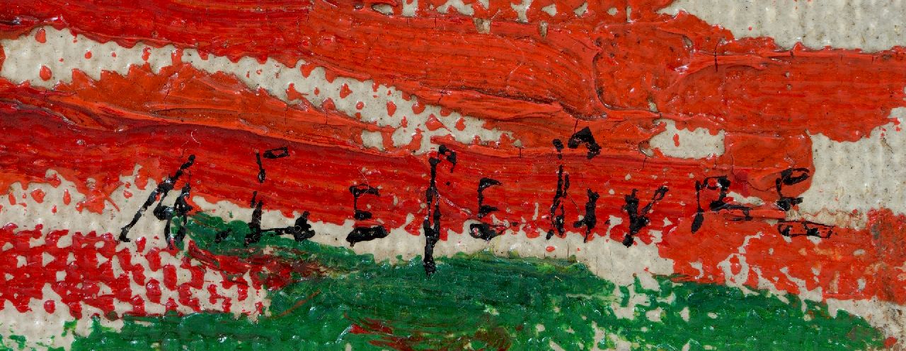 olieverf op doek op board 10,1 x 17,7 cm, gesigneerd rechtsonder en verso gedateerd 1919