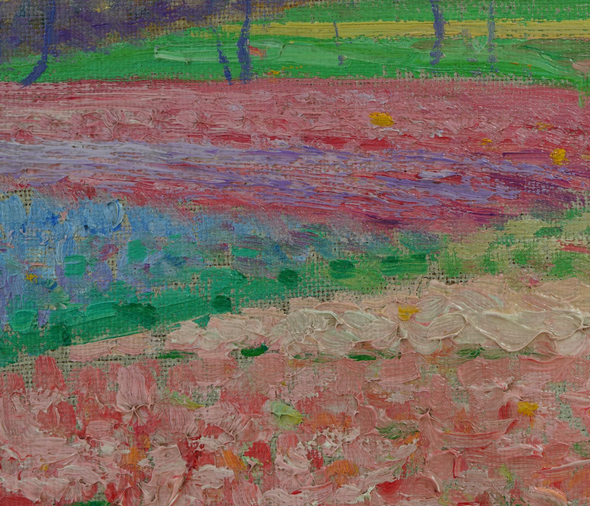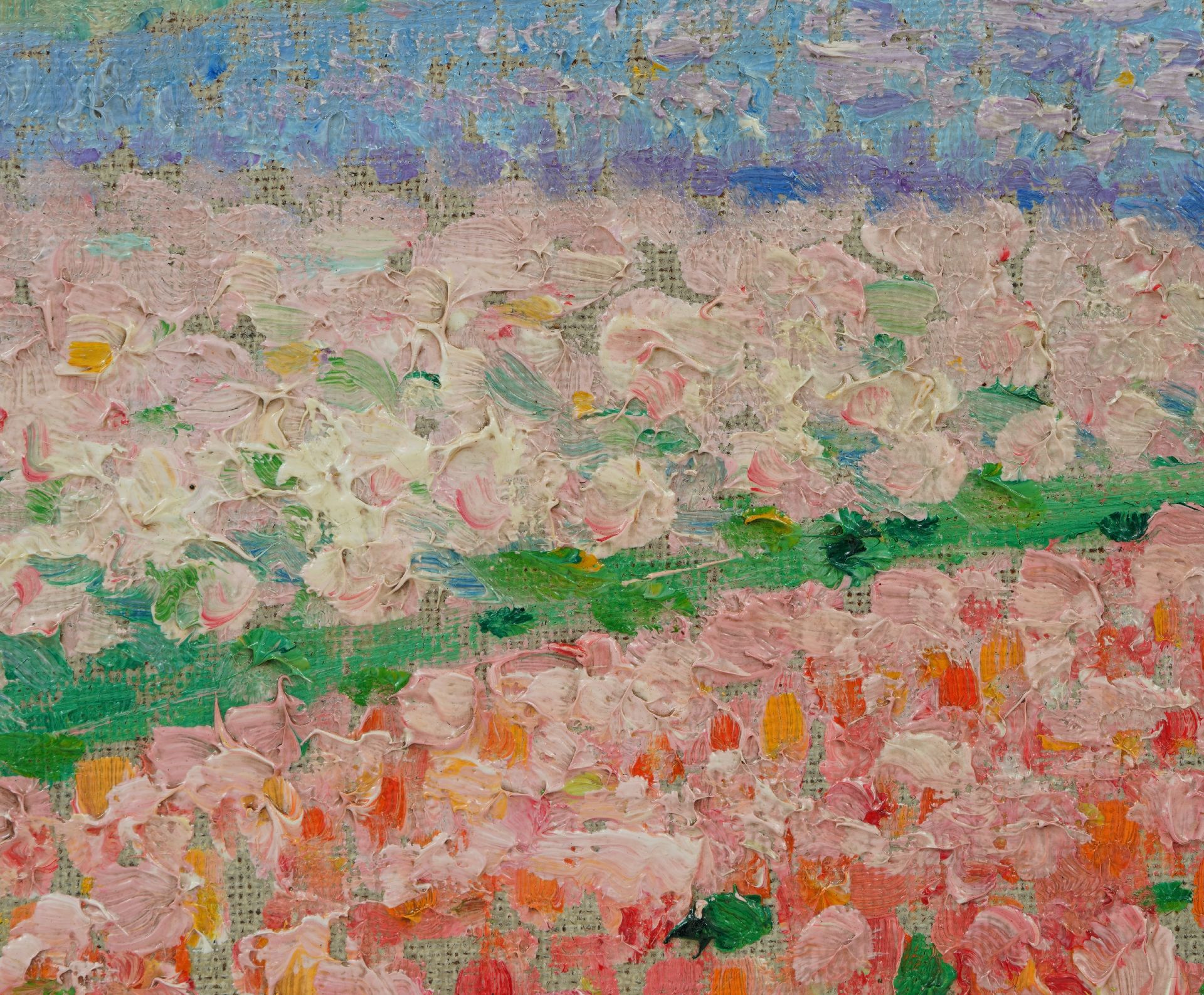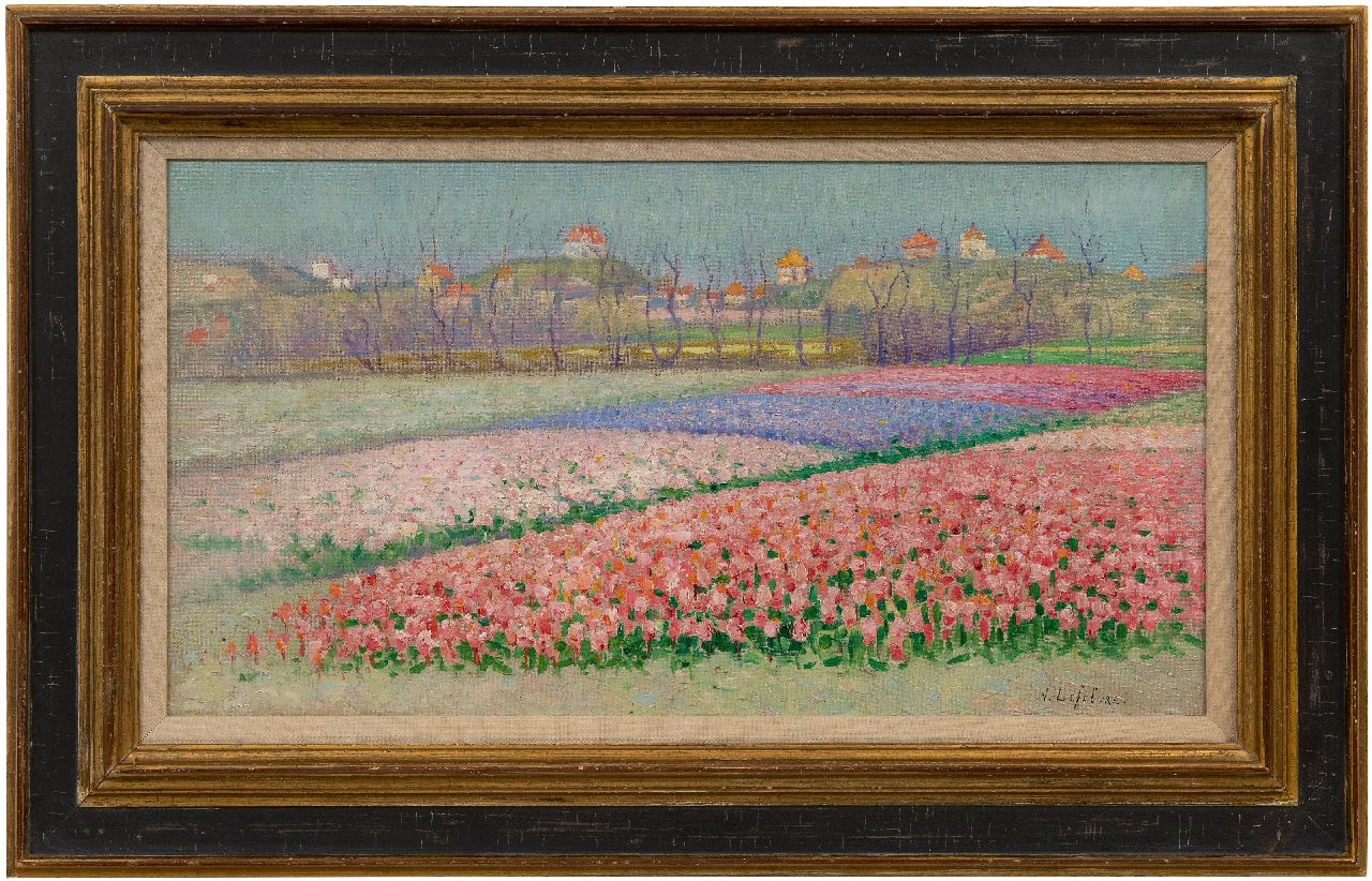 Albert Lefebvre kunstwerk • schilderij • voorheen te koop Hyacintenvelden achter de duinen bij Noordwijk