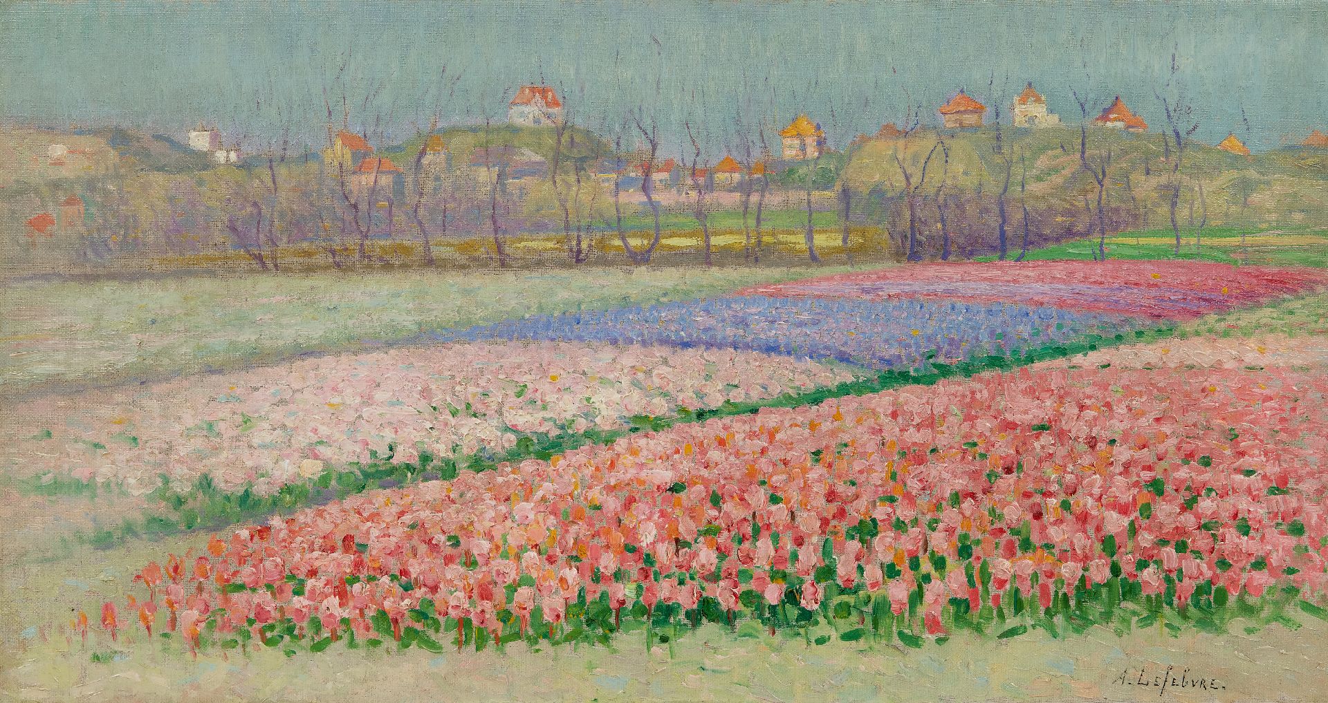 De Belgische kunstenaar Albert Lefebvre volgde een opleiding aan de academie in Antwerpen. In 1910 maakte hij een studiereis naar Parijs, later naar Rome en Athene. Hij zou daarna nog regelmatig naar Italië en Griekenland terugkeren. Gedurende de Eerste Wereldoorlog verbleef hij in Nederland, onder meer in Noordwijk, waar hij zich door het kustlandschap en de nabijgelegen bollenvelden bij Lisse en Hillegom liet inspireren. Lefebvre schilderde voornamelijk landschappen, in een impressionistische tot luministische stijl.