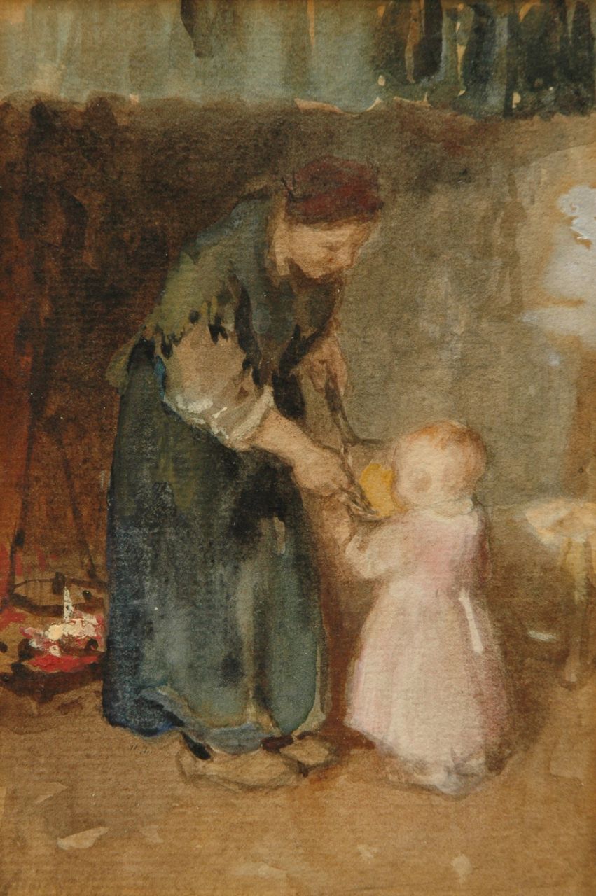 aquarel en gouache op papier 15,0 x 10,2 cm, gesigneerd linksonder (vaag)