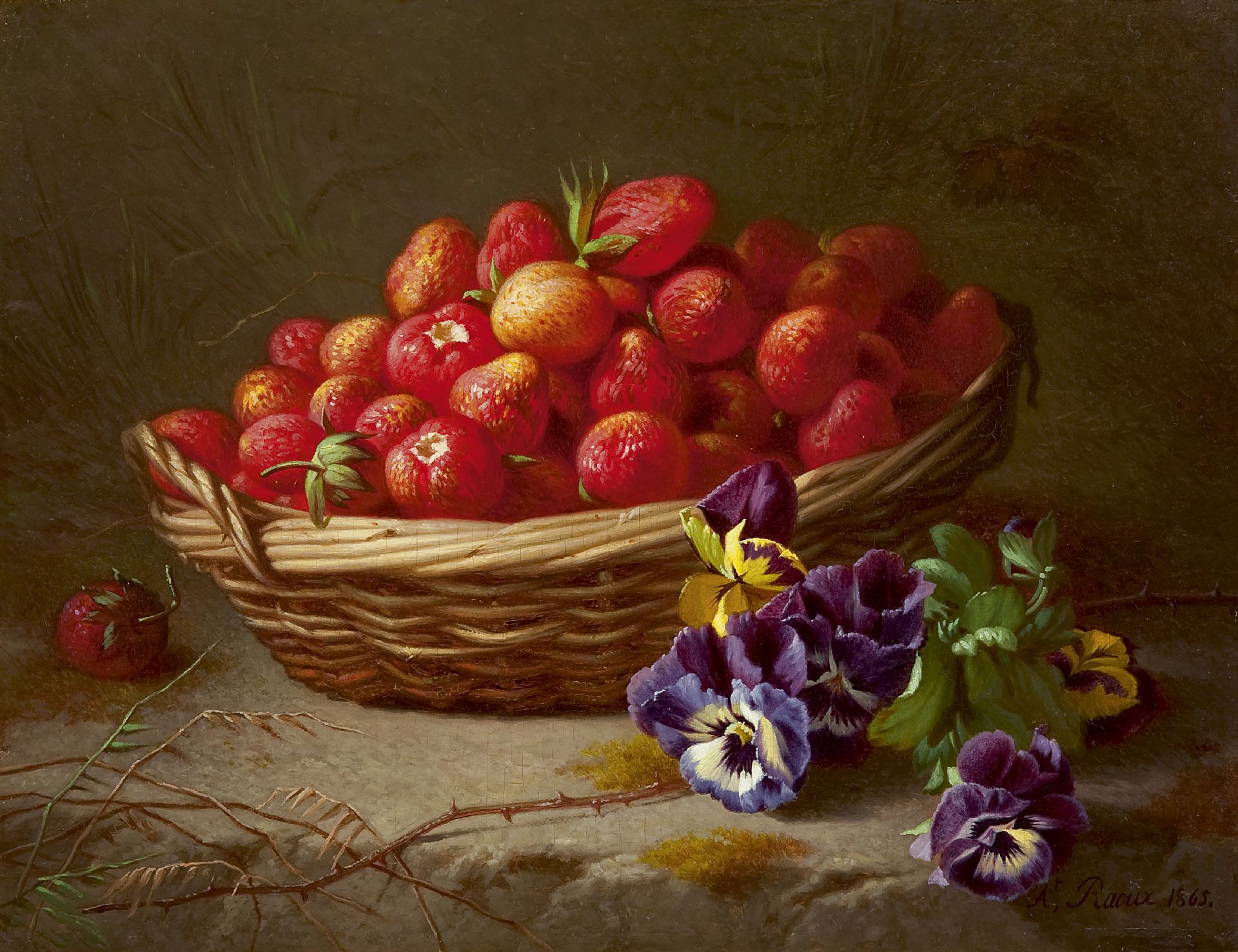 Albert Raoux kunstwerk • schilderij • voorheen te koop Aardbeien in mand