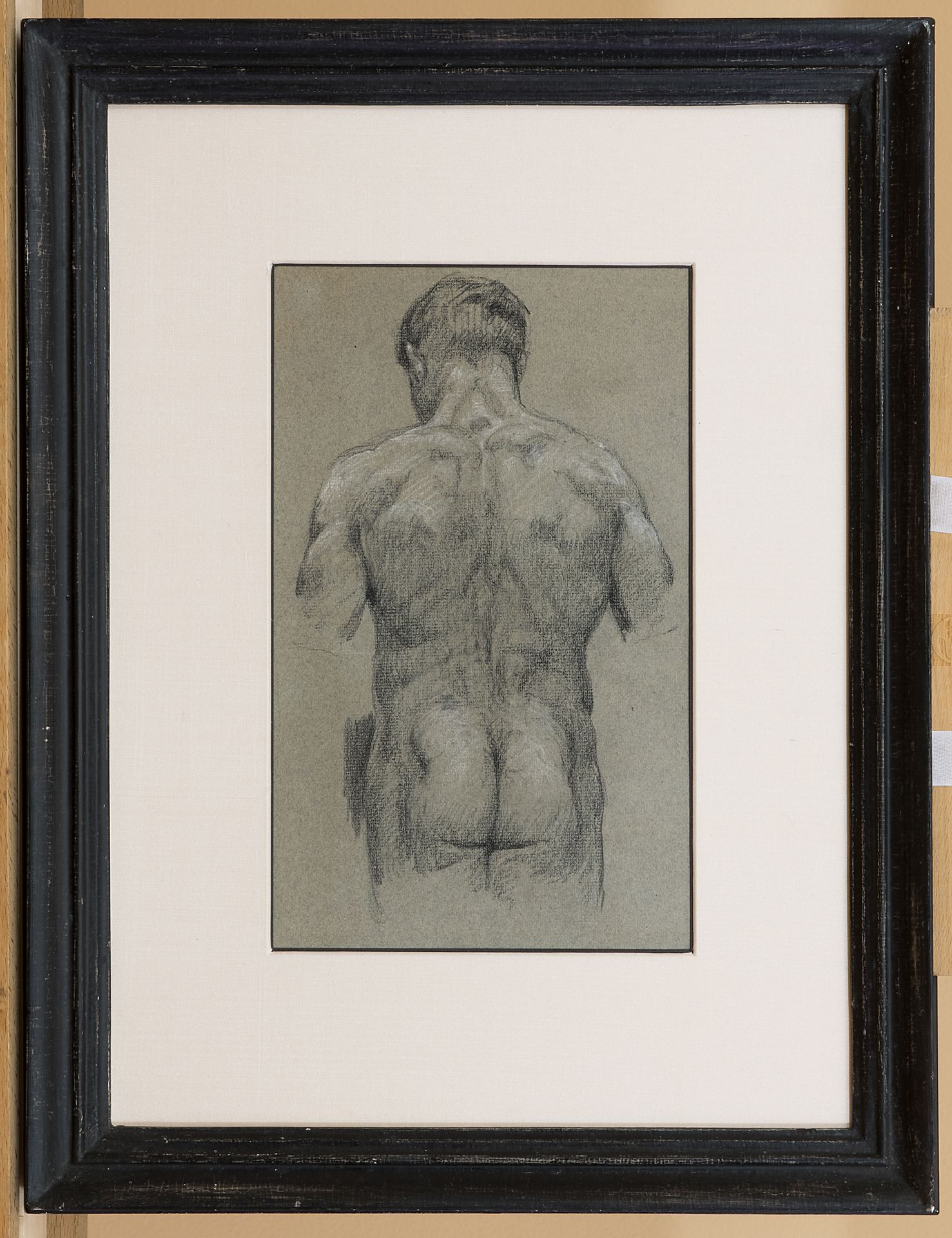 Roelofs O.W.A.  | Otto Willem Albertus 'Albert' Roelofs | Aquarellen en tekeningen te koop aangeboden | Naaktstudie van man op de rug gezien, zwart en wit krijt op papier 34,2 x 17,2 cm