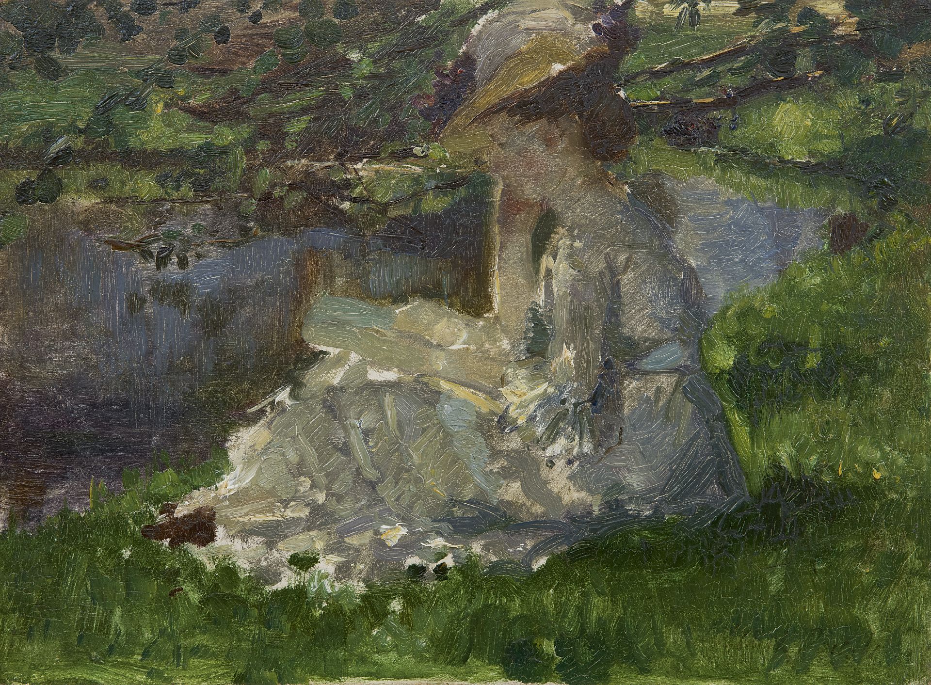 Albert Roelofs kunstwerk • schilderij • voorheen te koop Aan de vijver