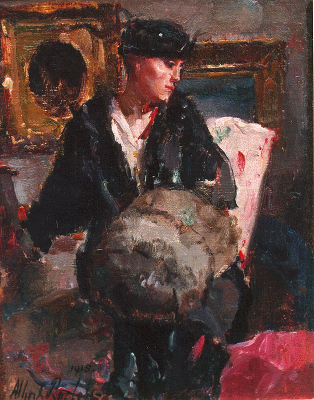 Albert Roelofs kunstwerk • schilderij • voorheen te koop Dame met mof