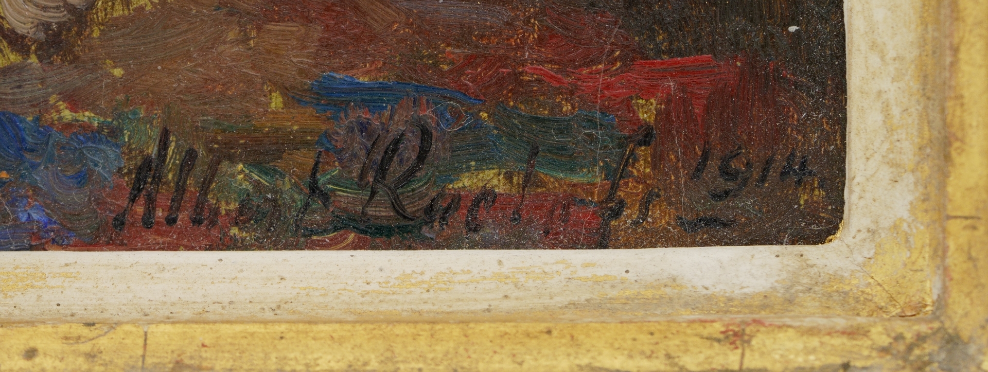 olieverf op paneel 17,8 x 13,8 cm, gesigneerd rechtsonder en gedateerd 1914