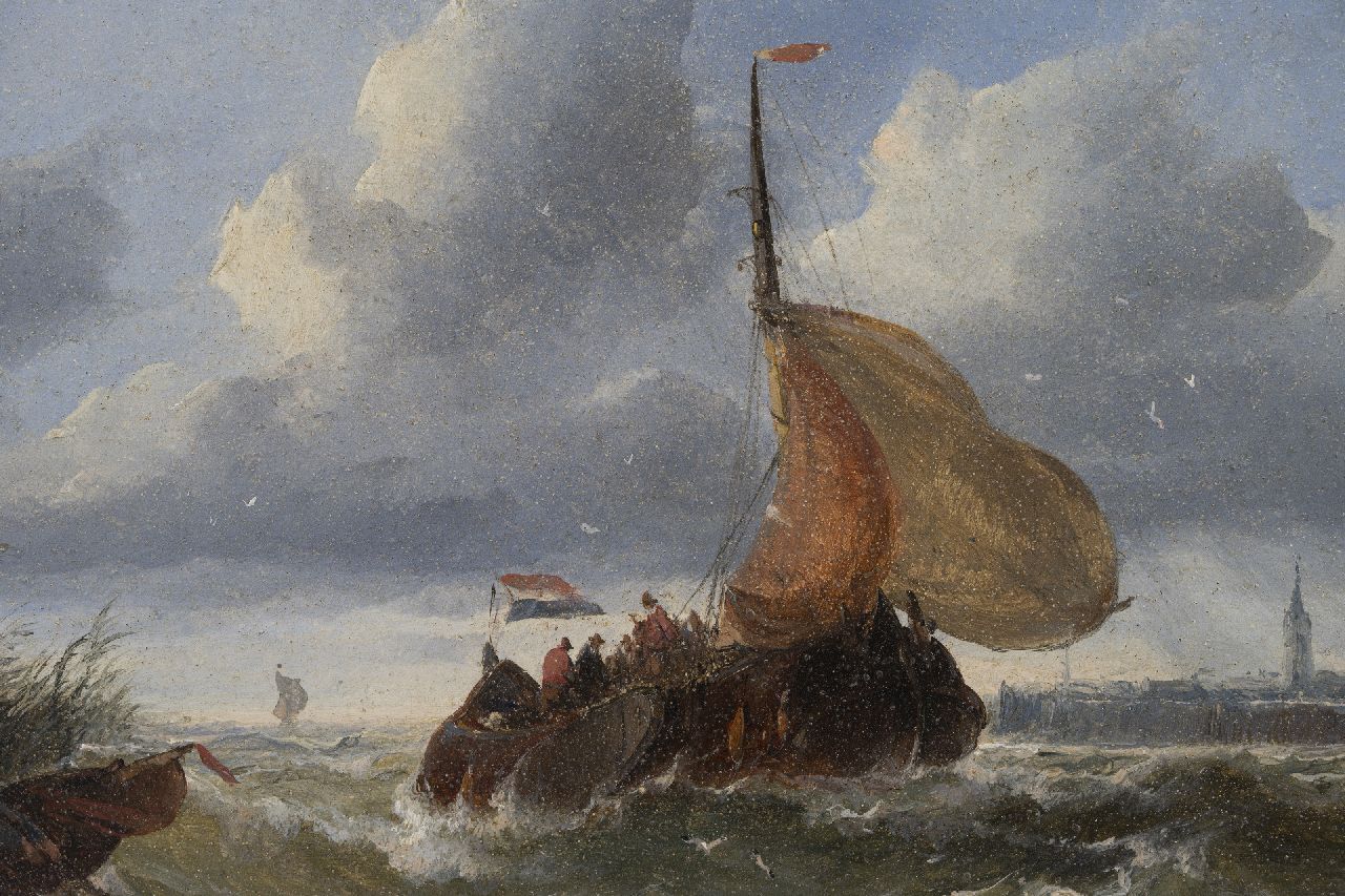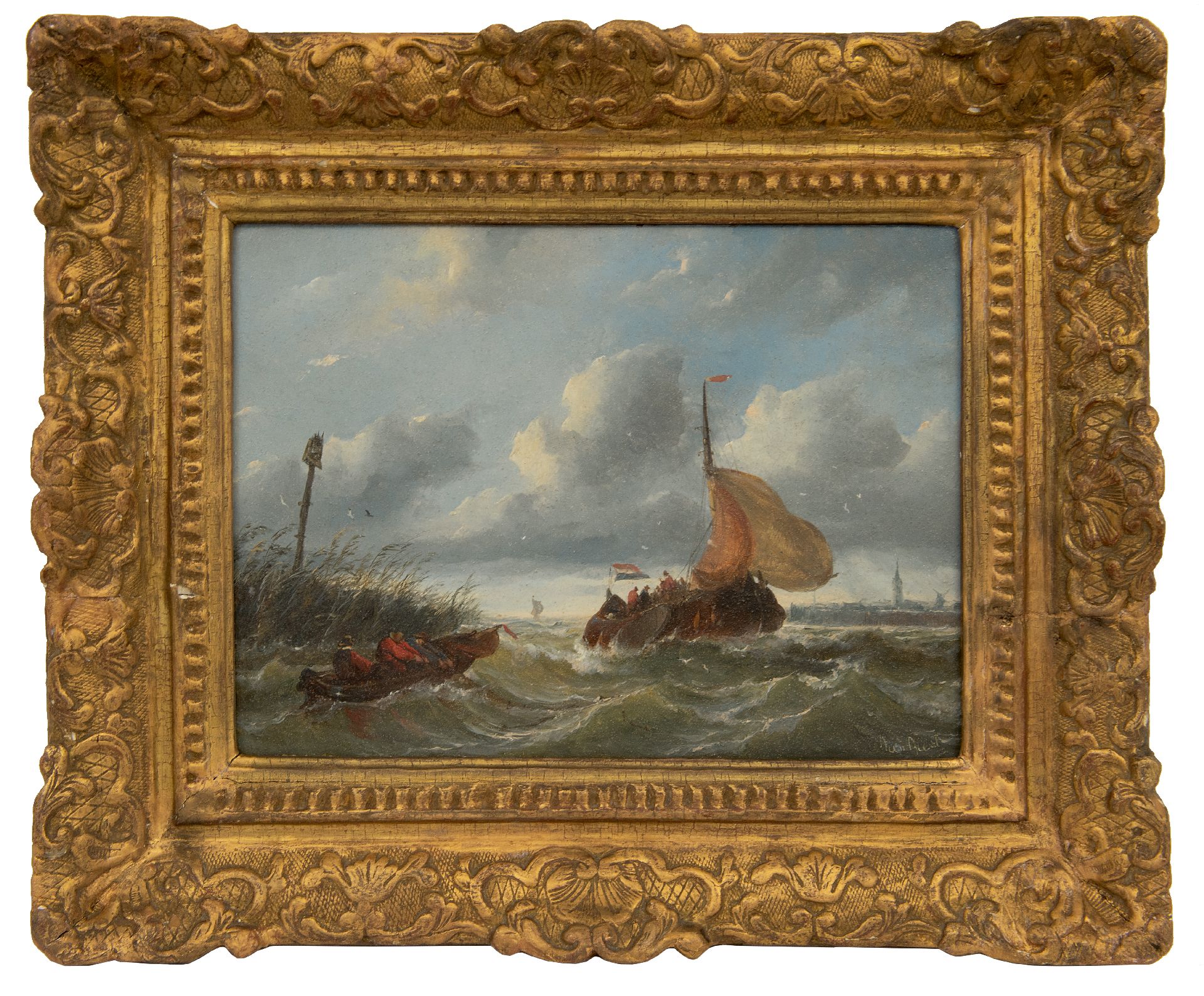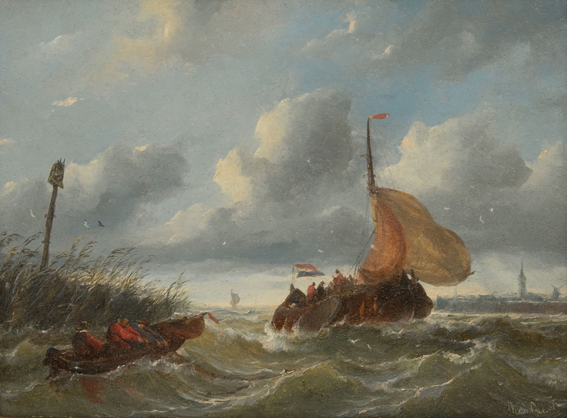 Albertus van Beest kunstwerk • schilderij • voorheen te koop Boeier in woelige haveningang