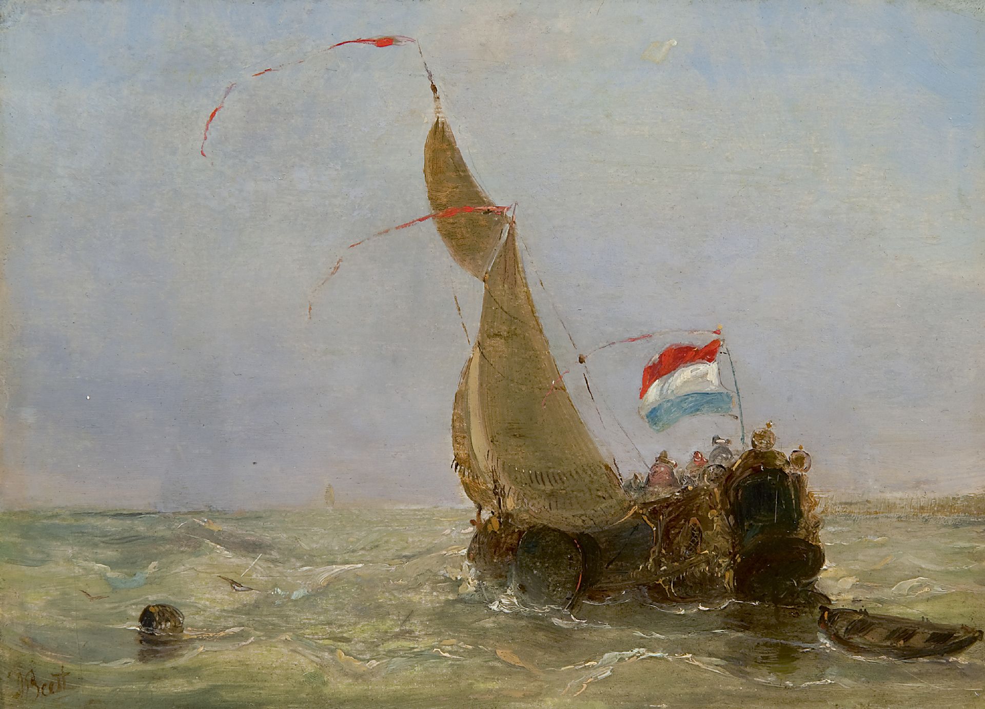 Albertus van Beest kunstwerk • schilderij • voorheen te koop Spelevarende boeier op woelige zee