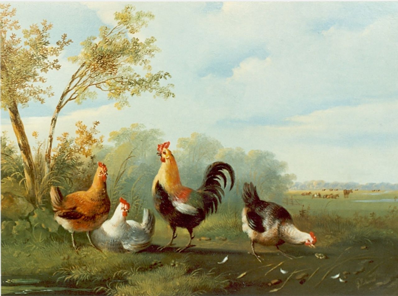 Albertus Verhoesen, gespecialiseerd in het schilderen van landschappen met honden, kleinvee en dierenstallen werd het meest bekend met zijn pluimveetaferelen. Hij was een leerling van Jan van Ravenswaay en van de veeschilder P.G. van Os, woonde en werkte in Utrecht en Amersfoort en maakte van 1824 tot 1826 deel uit van de kunstenaarskolonie in Hilversum. In deze ‘Hilversumse jaren' kreeg Verhoesen waarschijnlijk les van B.C. Koekkoek, die daar toen ook verbleef. In Amersfoort werkte Verhoesen bijna twintig jaar als stadstekenmeester. Daarnaast was hij ook kunsthandelaar.