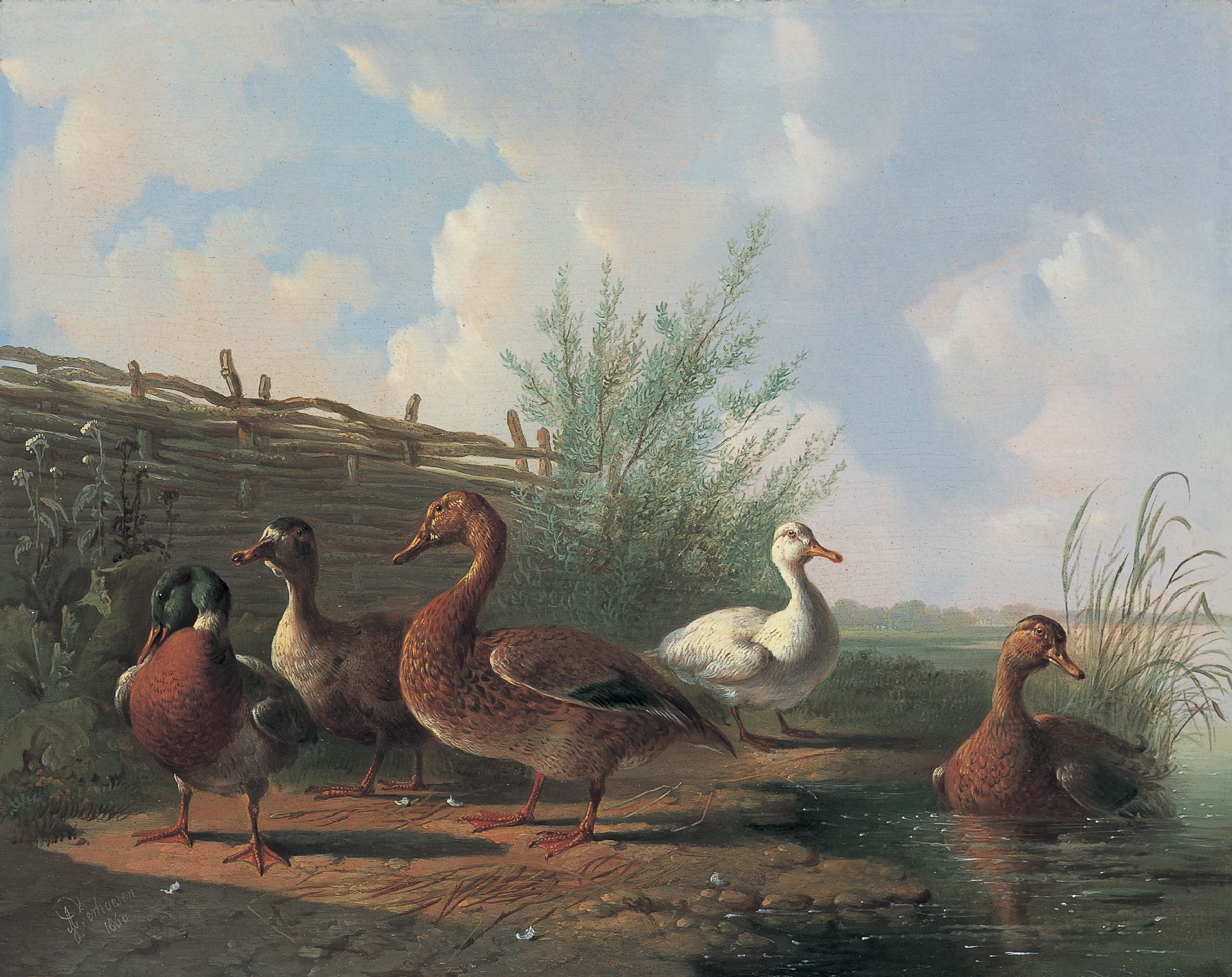 Albertus Verhoesen kunstwerk • schilderij • voorheen te koop Eenden bij de waterkant