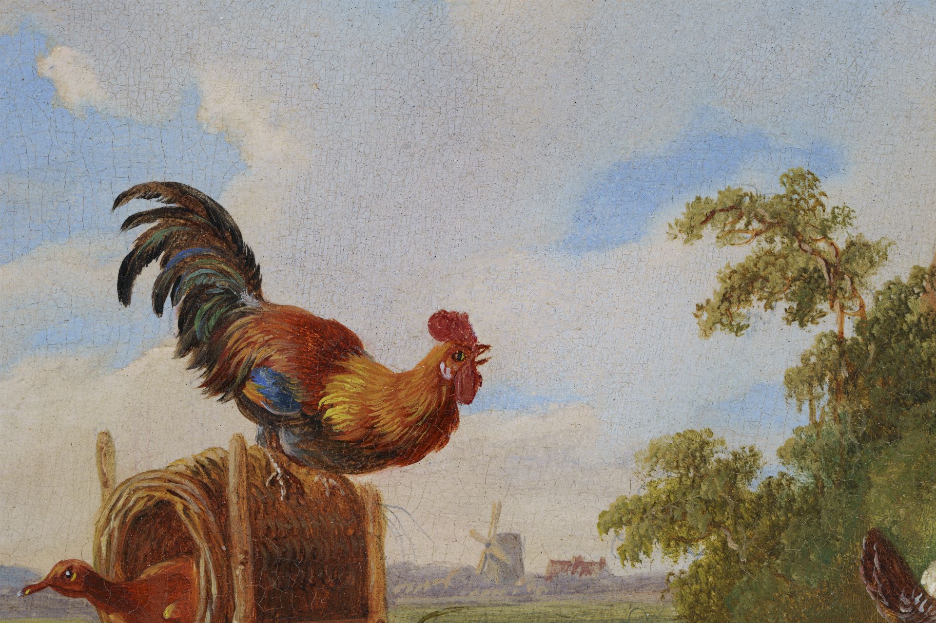 Albertus Verhoesen, gespecialiseerd in het schilderen van landschappen met honden, kleinvee en dierenstallen werd het meest bekend met zijn pluimveetaferelen. Hij was een leerling van Jan van Ravenswaay en van de veeschilder P.G. van Os, woonde en werkte in Utrecht en Amersfoort en maakte van 1824 tot 1826 deel uit van de kunstenaarskolonie in Hilversum. In deze ‘Hilversumse jaren' kreeg Verhoesen waarschijnlijk les van B.C. Koekkoek, die daar toen ook verbleef. In Amersfoort werkte Verhoesen bijna twintig jaar als stadstekenmeester. Daarnaast was hij ook kunsthandelaar.