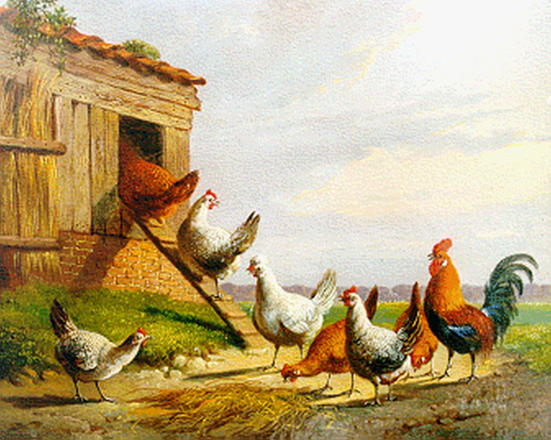 Albertus Verhoesen kunstwerk • schilderij • voorheen te koop Haan met kippen bij het hok