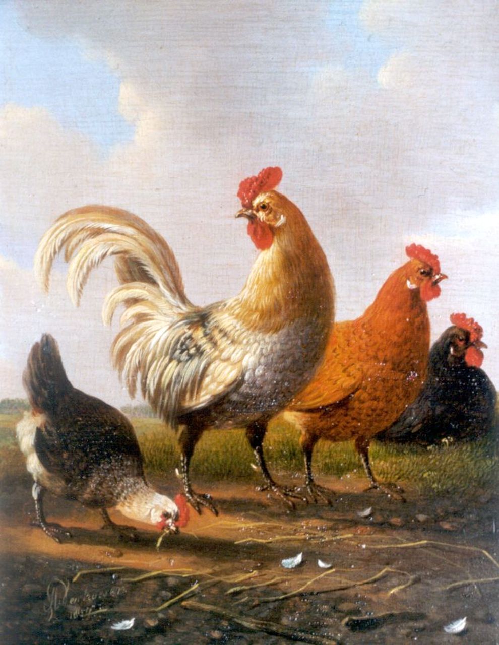 Albertus Verhoesen kunstwerk • schilderij • voorheen te koop Haan met kippen