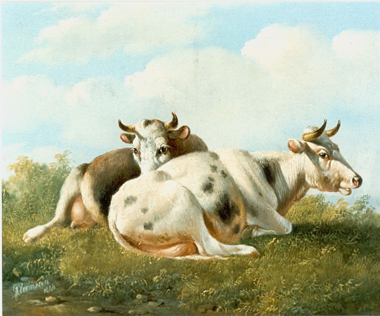 Albertus Verhoesen kunstwerk • schilderij • voorheen te koop Liggende koeien in de weide