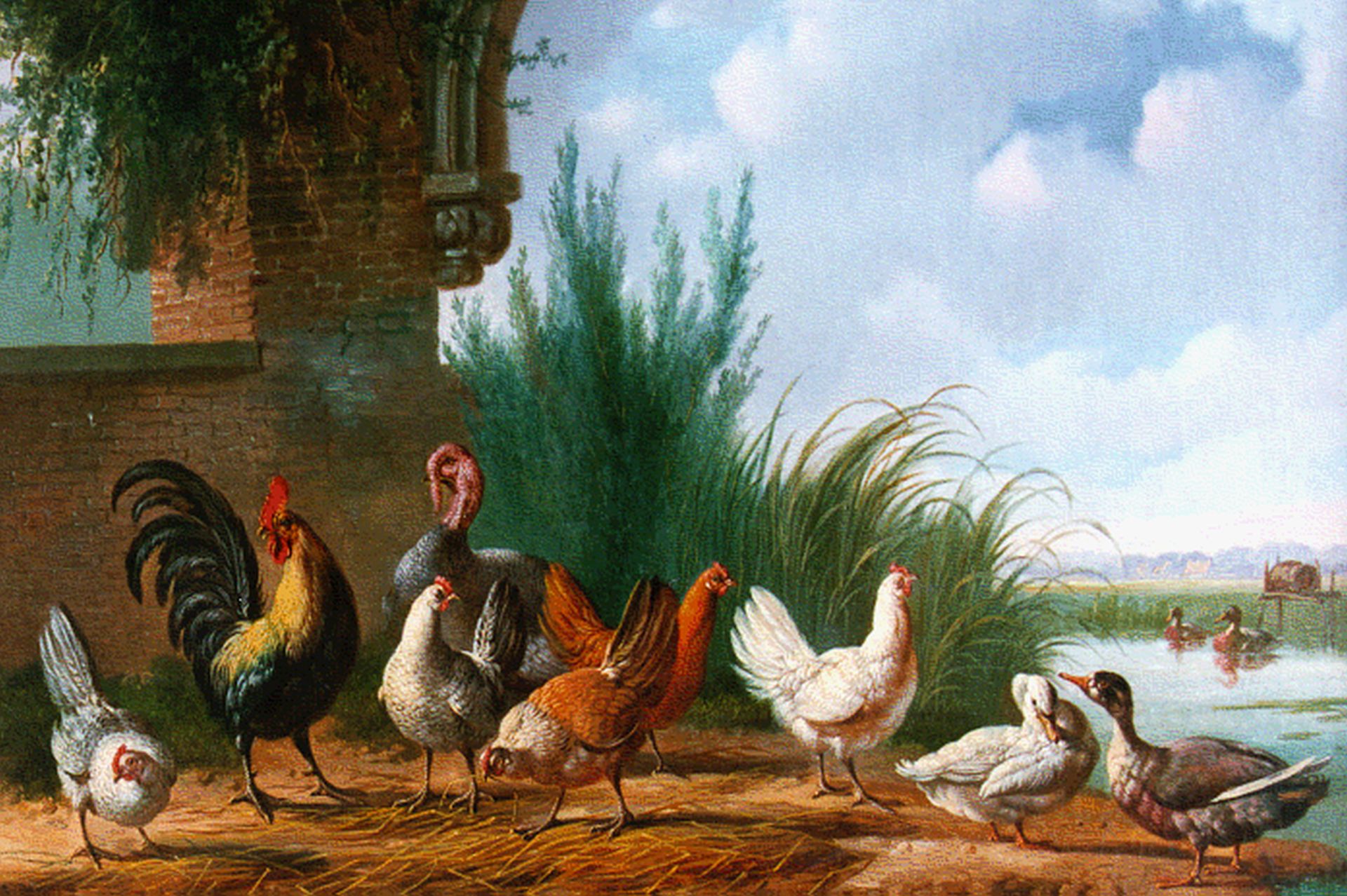 Albertus Verhoesen kunstwerk • schilderij • voorheen te koop Pluimvee aan de waterkant