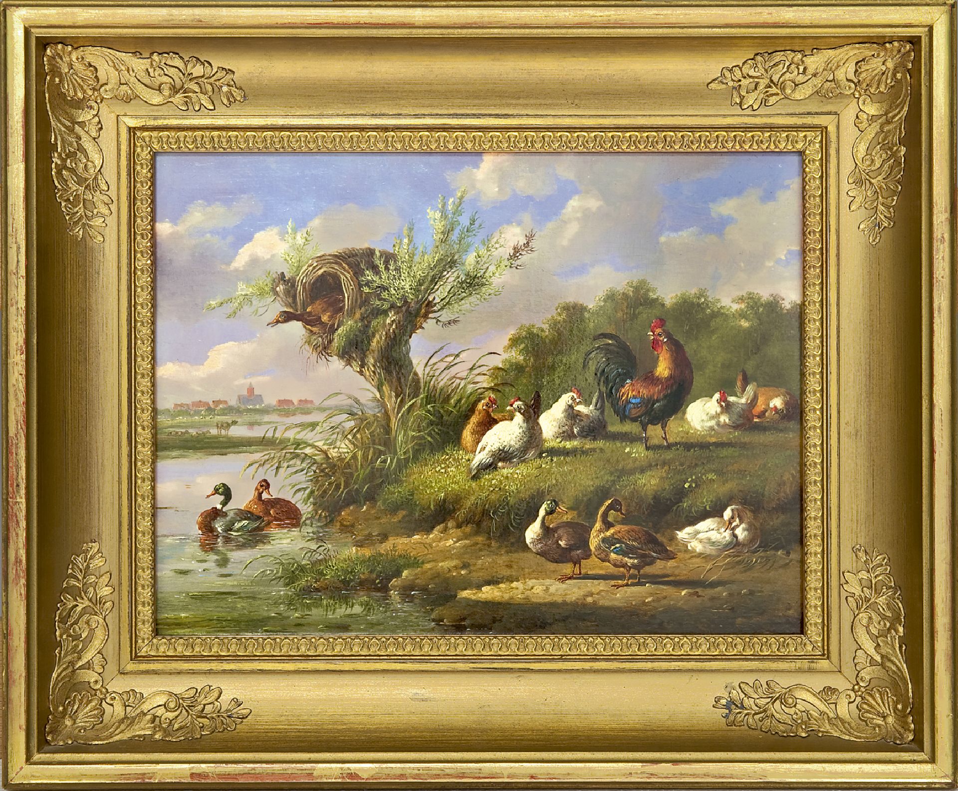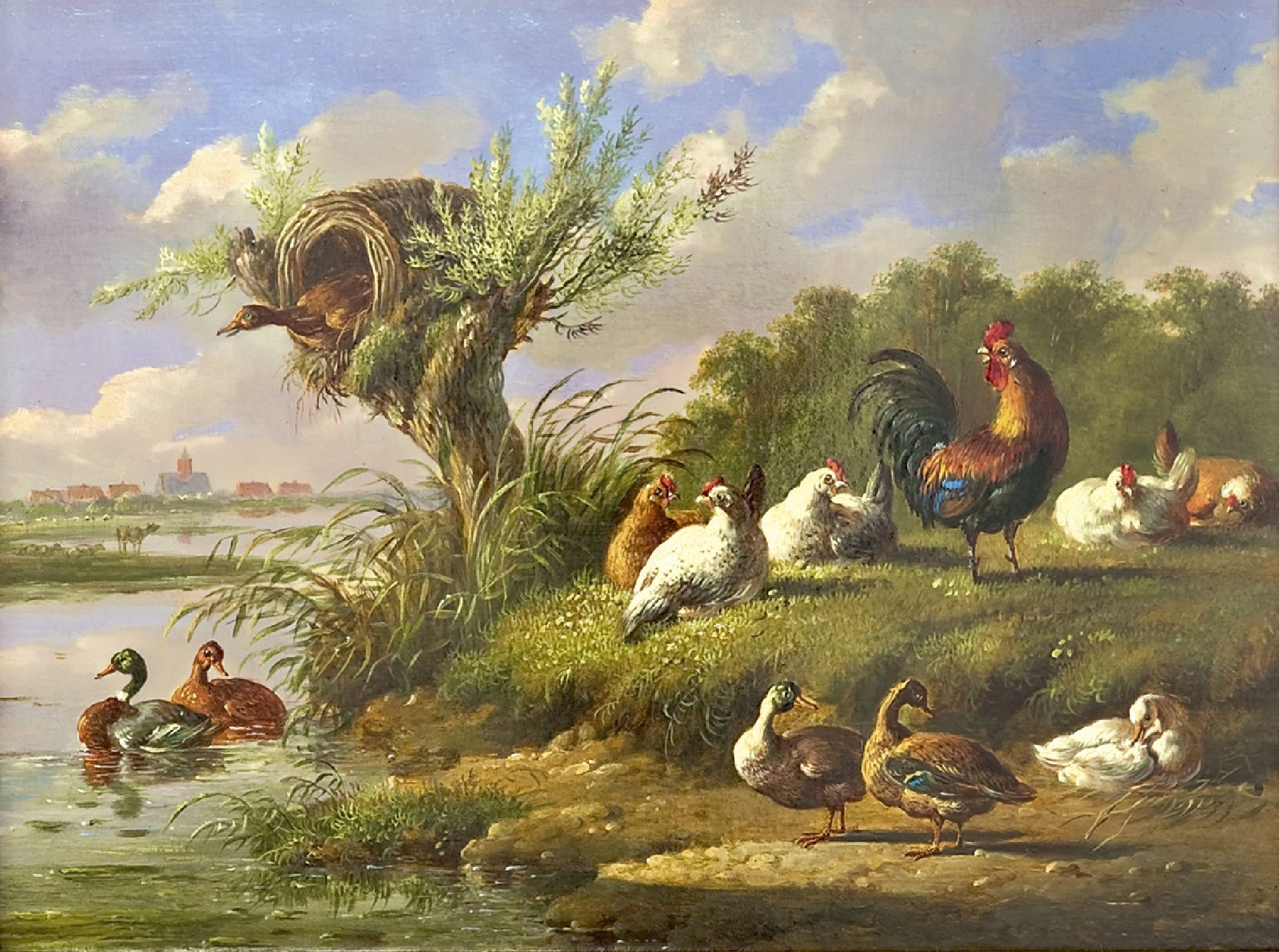 Albertus Verhoesen kunstwerk • schilderij • voorheen te koop Pluimvee aan het water