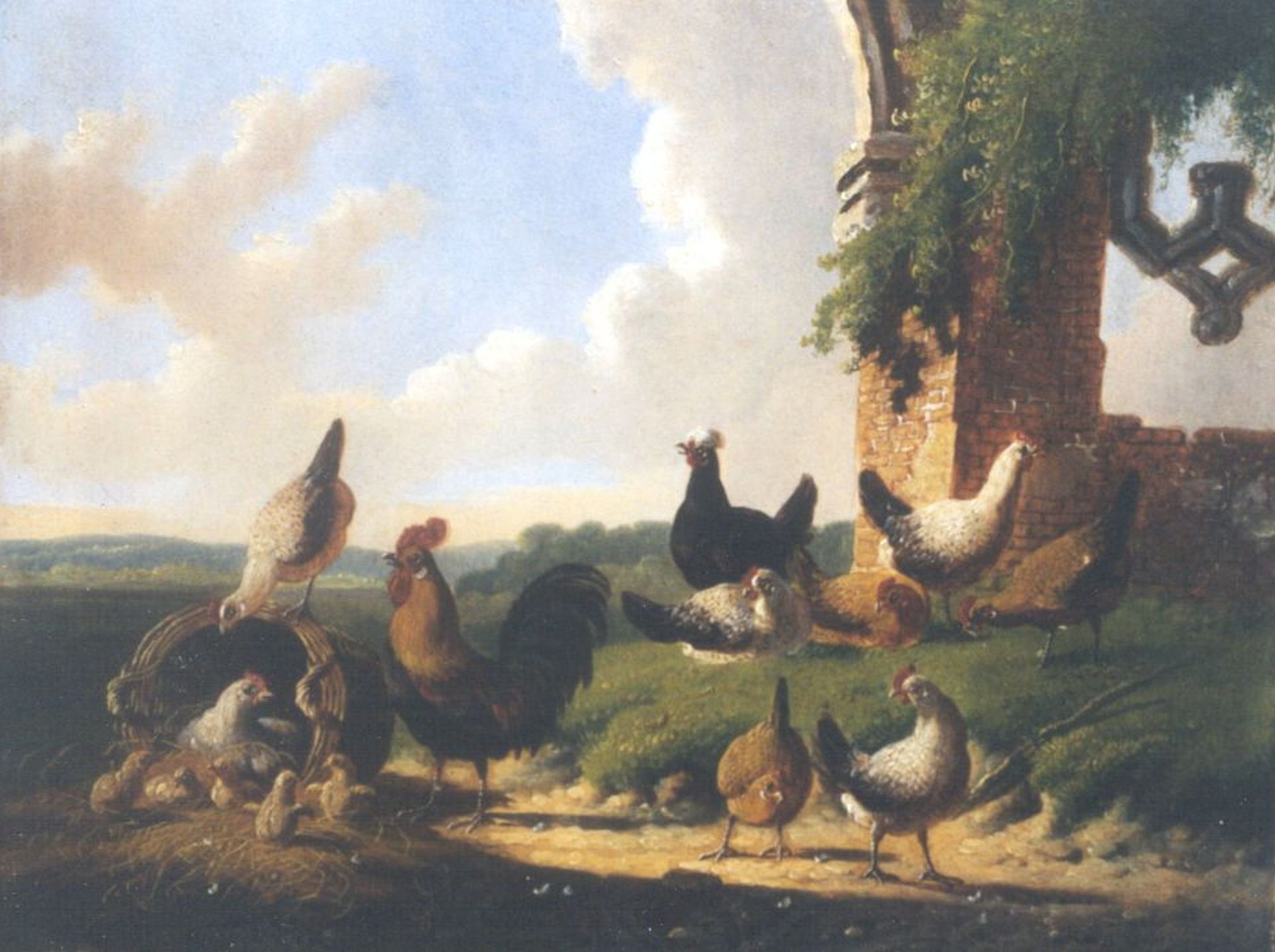 Albertus Verhoesen kunstwerk • schilderij • voorheen te koop Pluimvee bij een ruïne