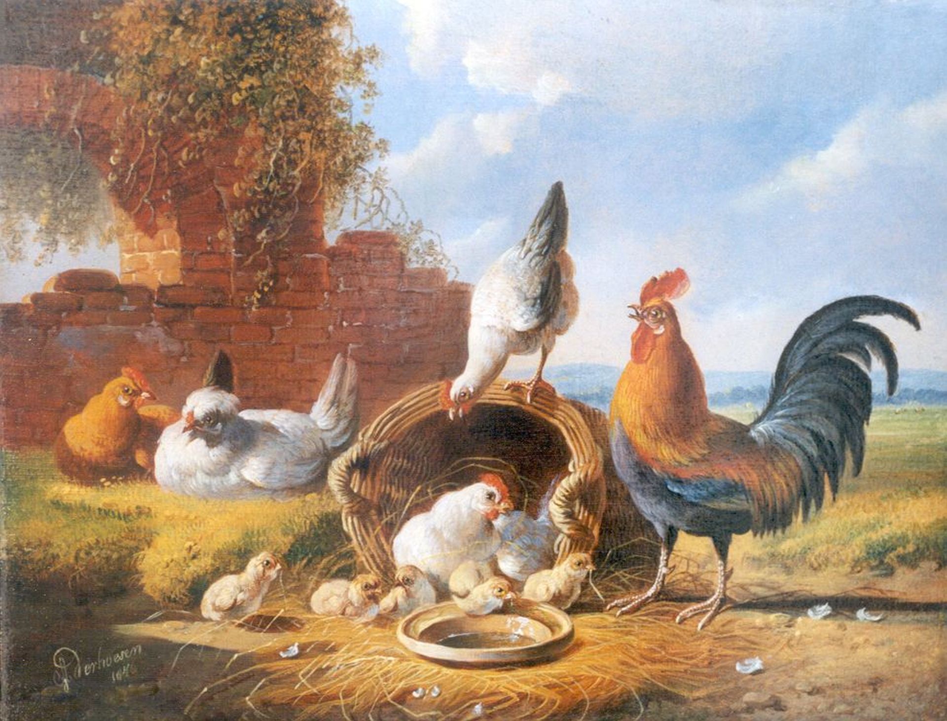 Albertus Verhoesen kunstwerk • schilderij • voorheen te koop Pluimvee bij een ruïne