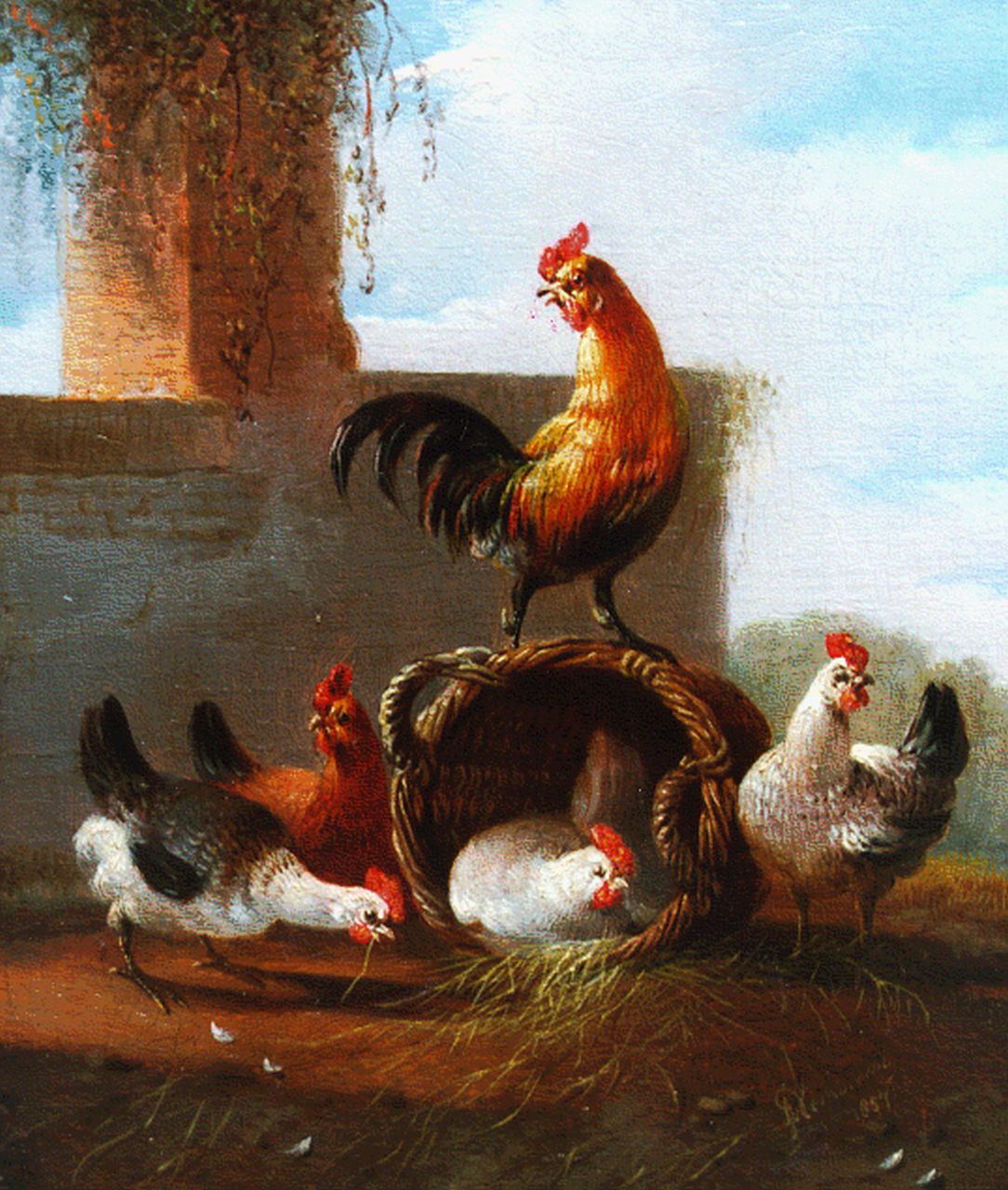 Albertus Verhoesen kunstwerk • schilderij • voorheen te koop Pluimvee bij mand