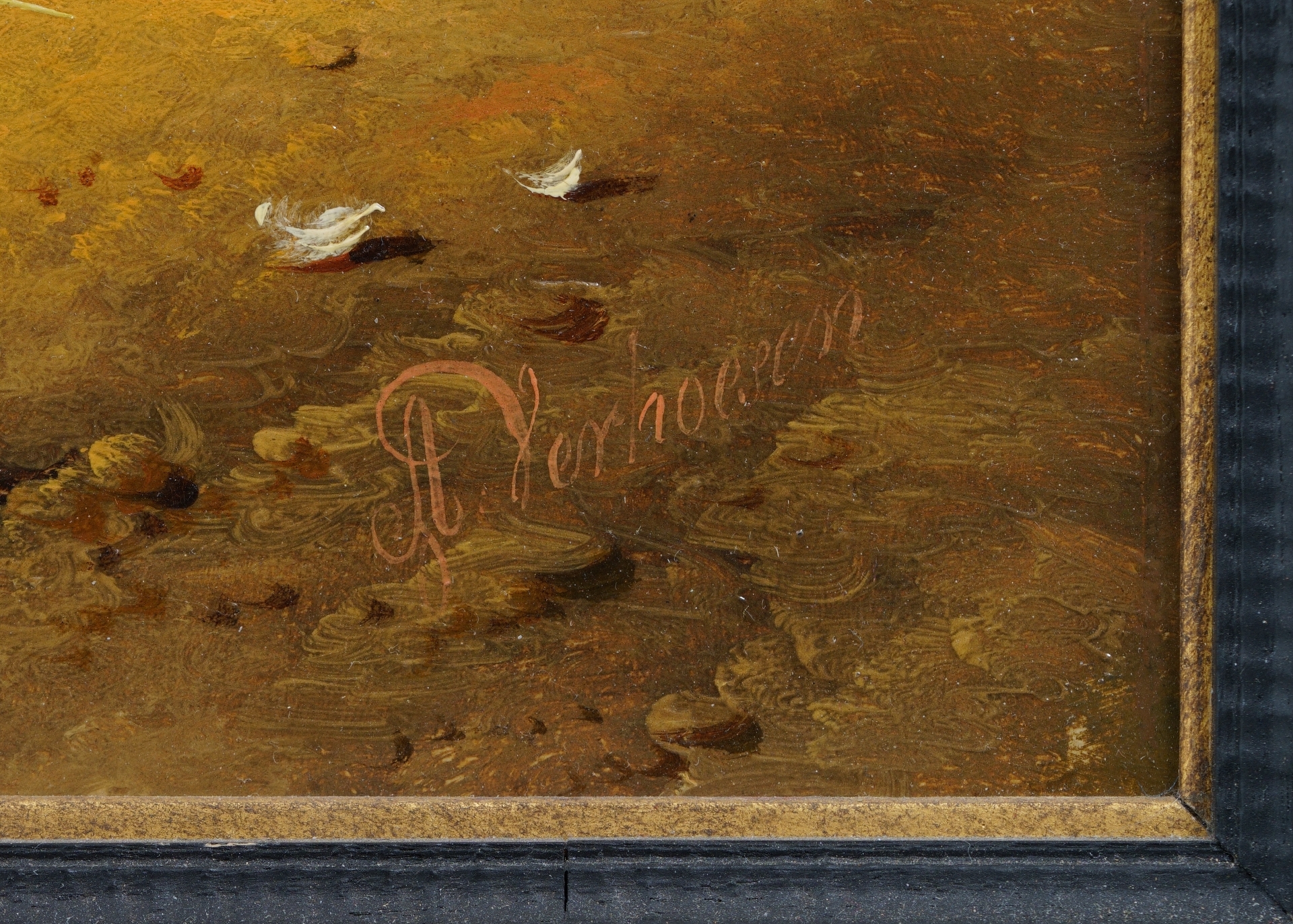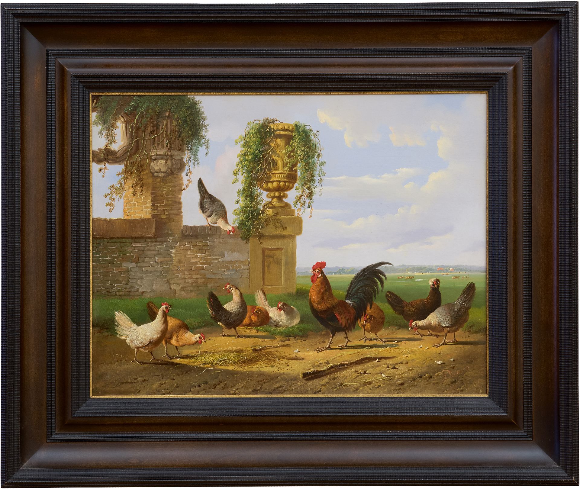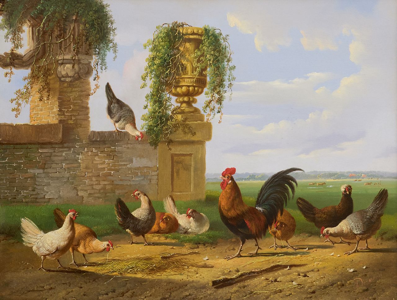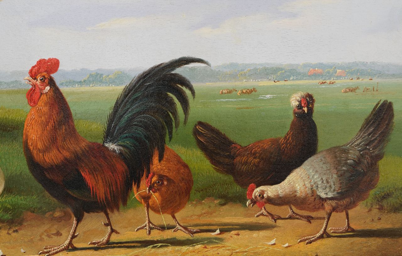 Albertus Verhoesen kunstwerk • schilderij • te koop Pluimvee in een Hollands landschap
