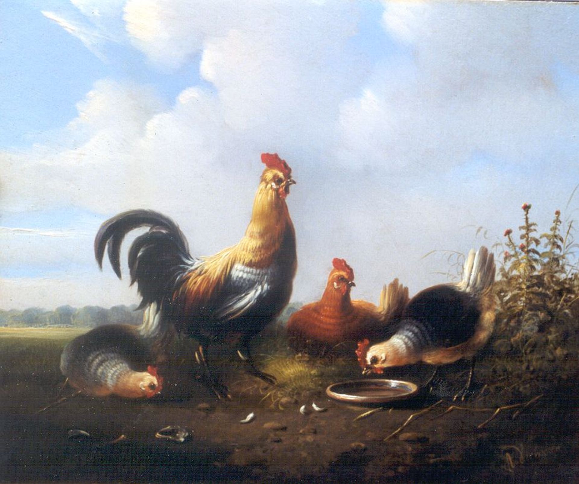 Albertus Verhoesen kunstwerk • schilderij • voorheen te koop Pluimvee in een wei