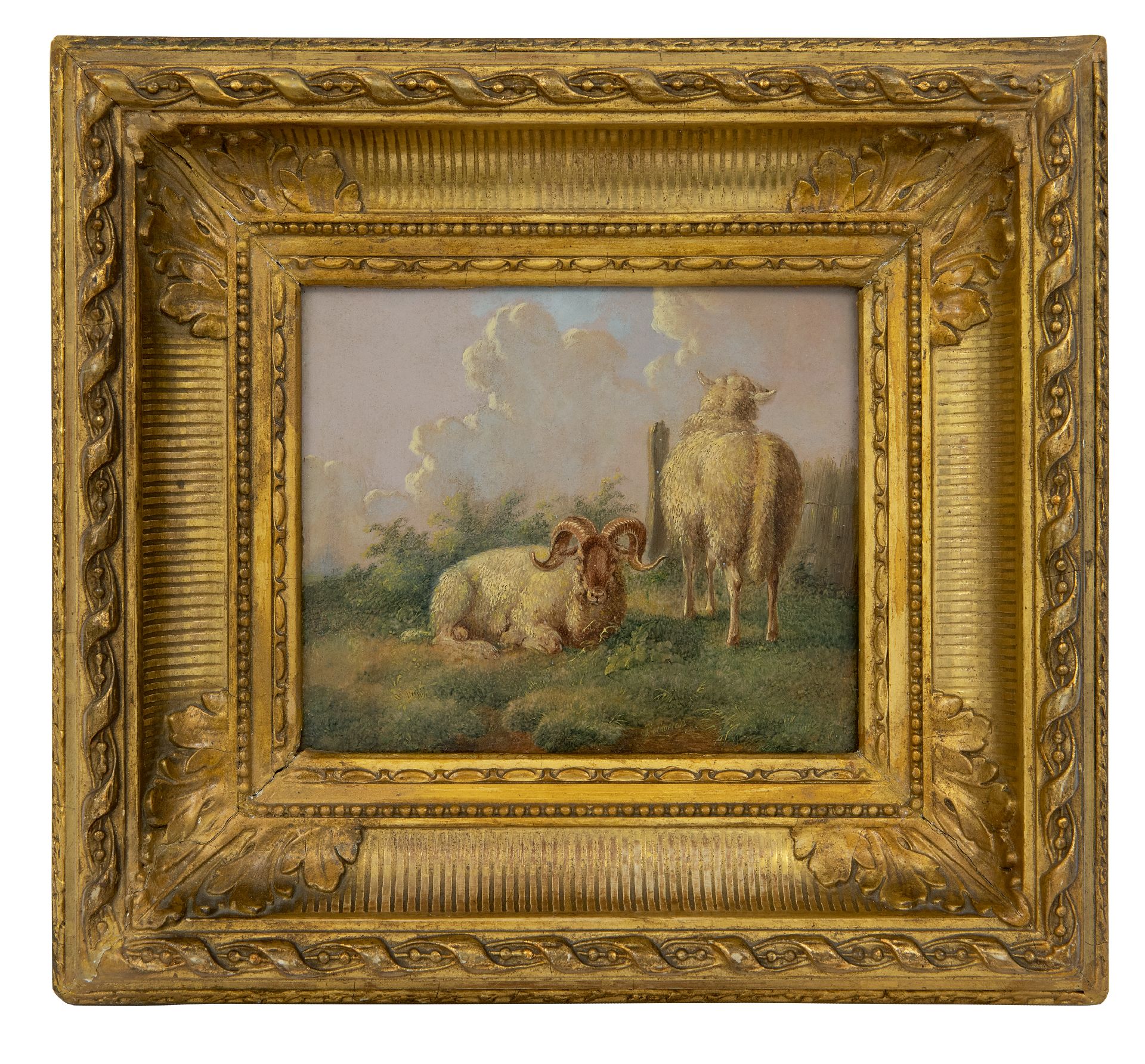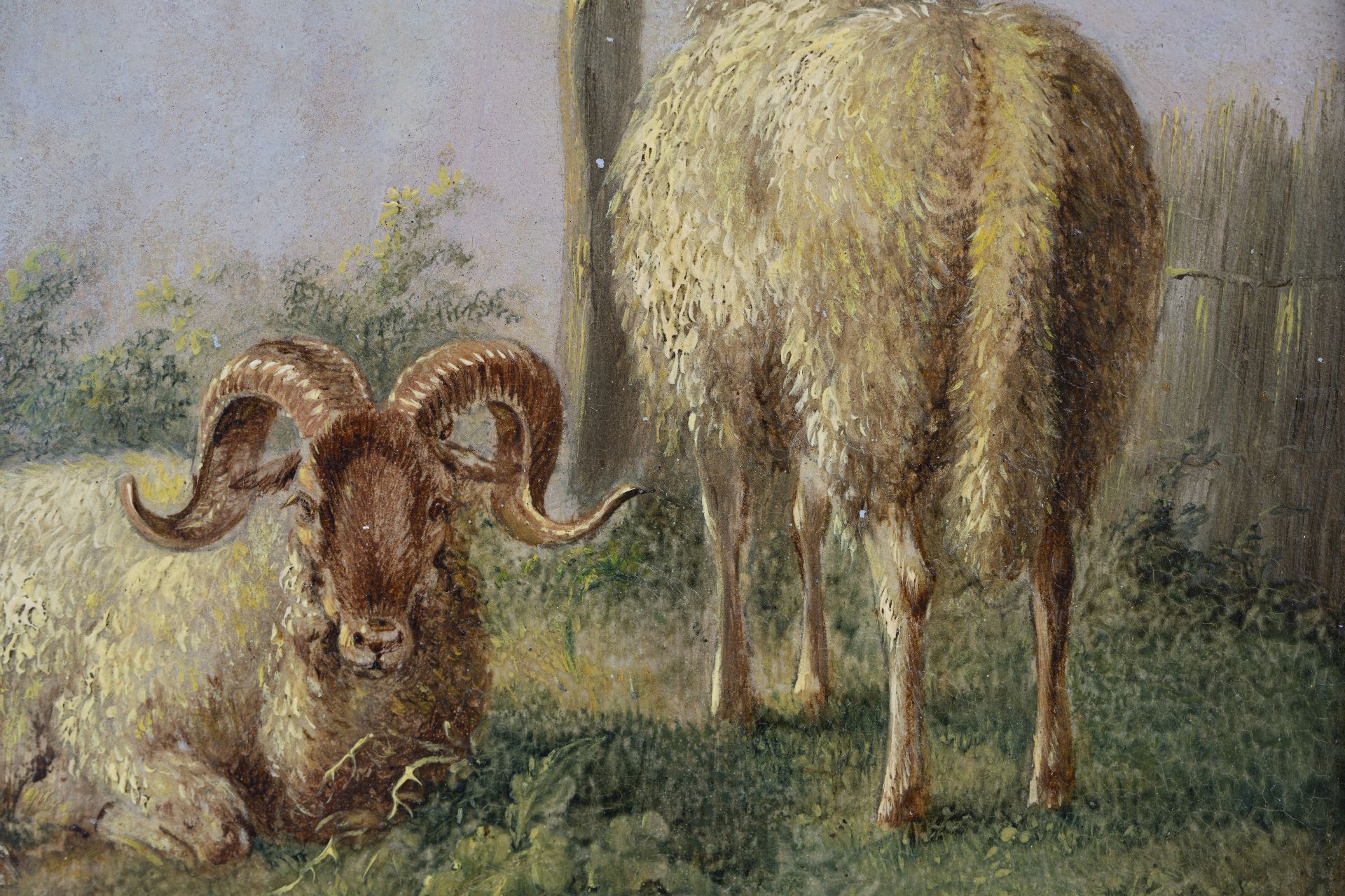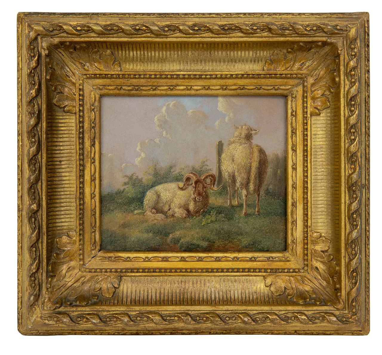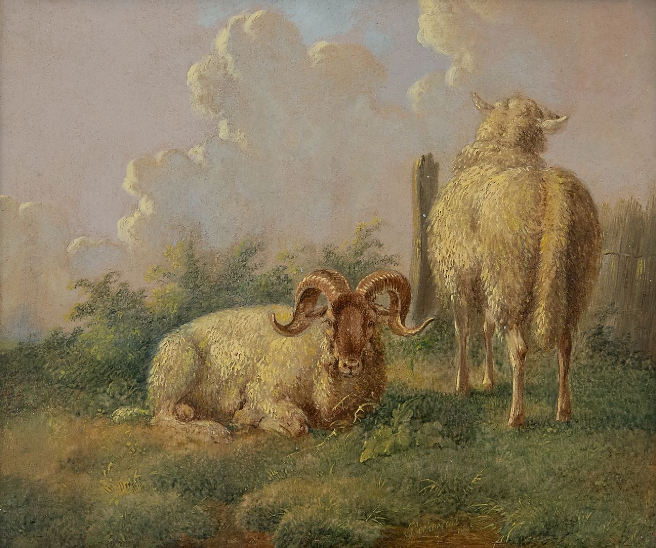 Albertus Verhoesen kunstwerk • schilderij • te koop Ram en ooi in zomerse weide