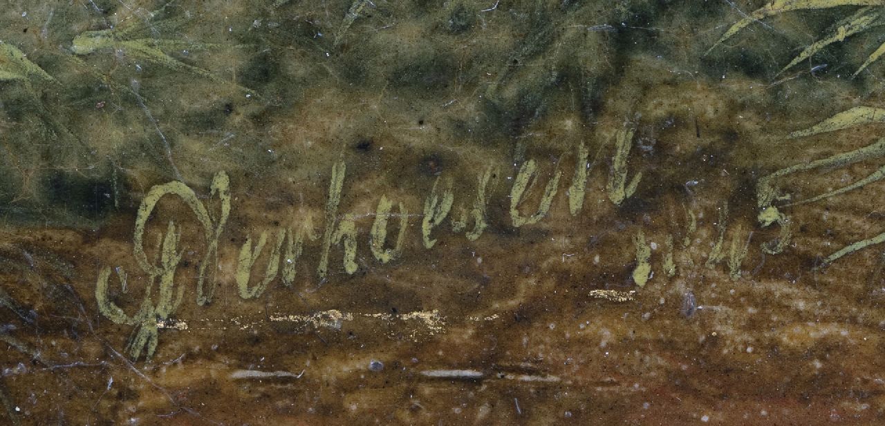 olieverf op paneel 14,5 x 16,5 cm, gesigneerd rechts van het midden. en gedateerd 1845