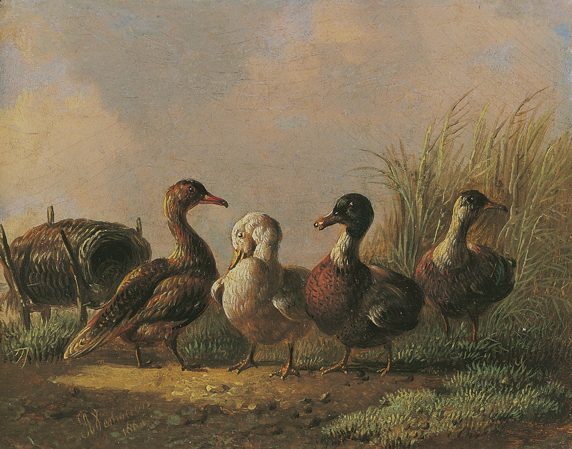 Albertus Verhoesen kunstwerk • schilderij • voorheen te koop Vier eenden