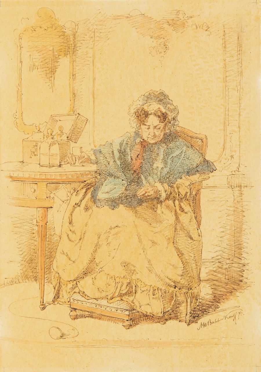 Alexander Hugo Bakker Korff woonde en werkte in Den Haag. Aanvankelijk schilderde hij historische en bijbelse voorstellingen. Rond 1859 begon hij met het tekenen en schilderen van genrestukjes op klein formaat in een uiterst precieze stijl. Het waren vooral huiselijke taferelen met oude vrijsters, waarvoor zijn twee ongetrouwde zusters model stonden. Zijn schilderijen hebben een humorvolle, soms ironische ondertoon, die geaccentueerd wordt door zorgvuldig gekozen titels. De schilder gaf onder meer les aan J.H. van Rossum du Chattel.