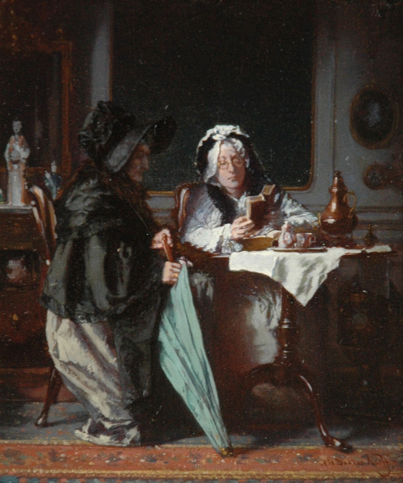Alexander Hugo Bakker Korff woonde en werkte in Den Haag. Aanvankelijk schilderde hij historische en bijbelse voorstellingen. Rond 1859 begon hij met het tekenen en schilderen van genrestukjes op klein formaat in een uiterst precieze stijl. Het waren vooral huiselijke taferelen met oude vrijsters, waarvoor zijn twee ongetrouwde zusters model stonden. Zijn schilderijen hebben een humorvolle, soms ironische ondertoon, die geaccentueerd wordt door zorgvuldig gekozen titels. De schilder gaf onder meer les aan J.H. van Rossum du Chattel.