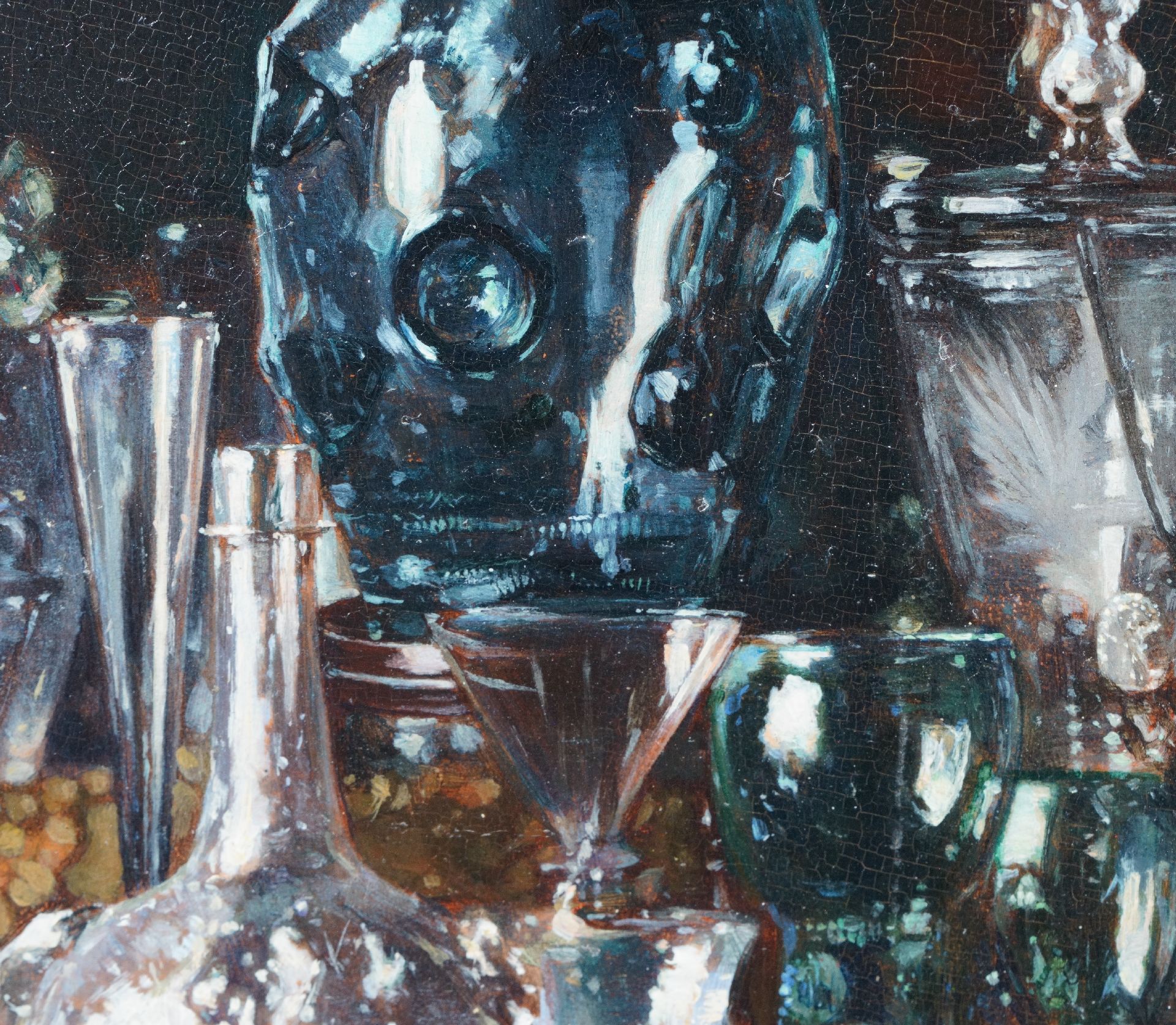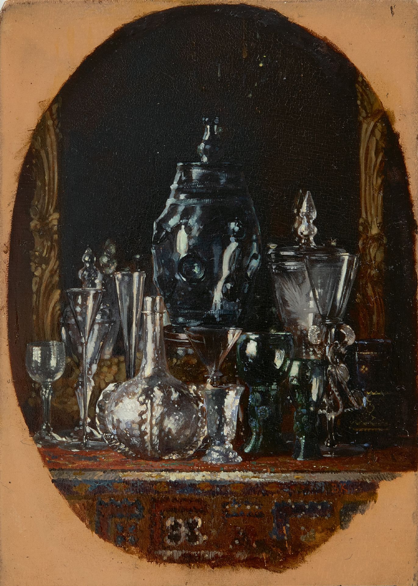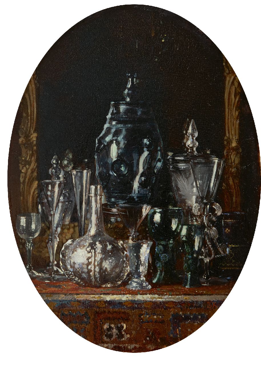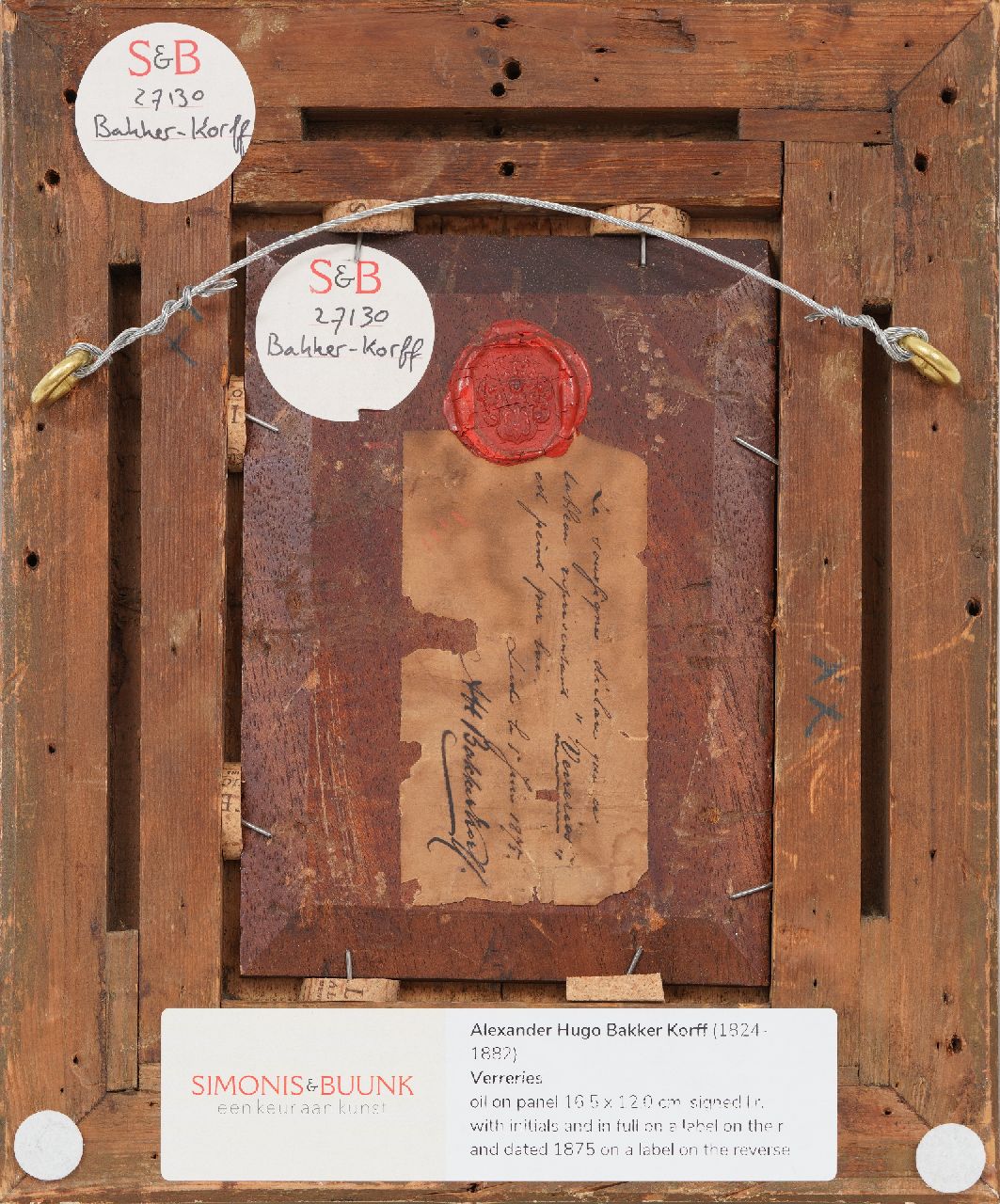 verso op verzegeld etiket: 'Je soussigné déclare que ce tableau representant "Verreries" est peint par lui. Lundi le 1er Juin 1875. A.H. Bakker Korff'