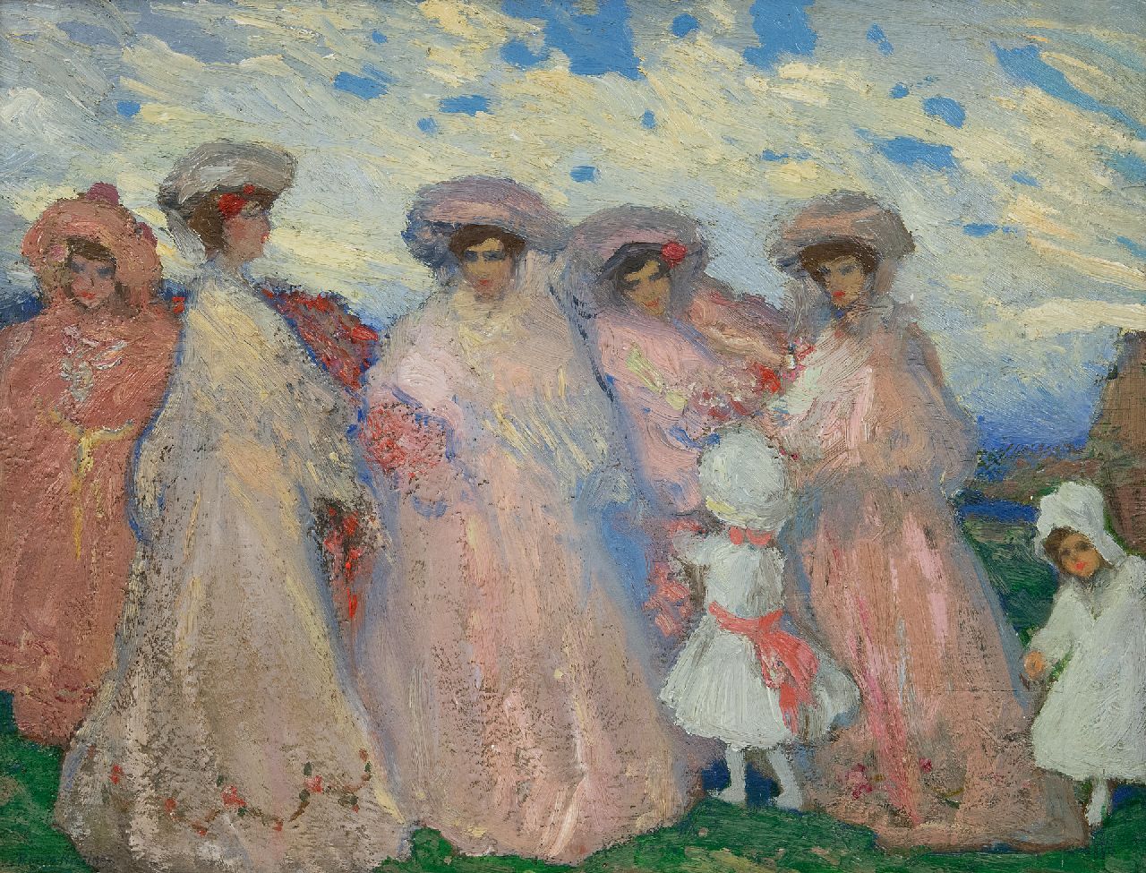 Alfredo Ramos Martinez kunstwerk • schilderij • te koop Elegante vrouwen in een landschap