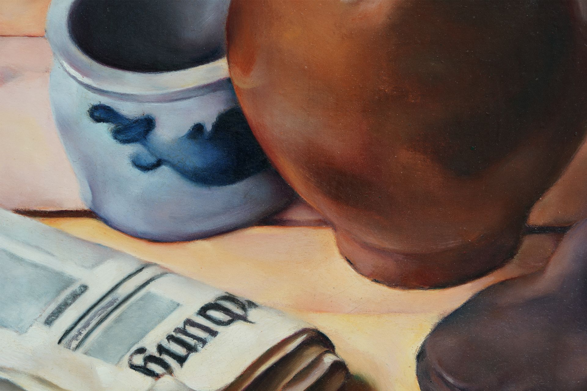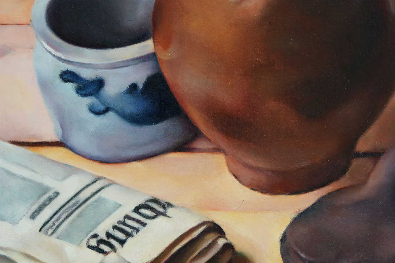 Stilleven met kruik, krant en een schoen
