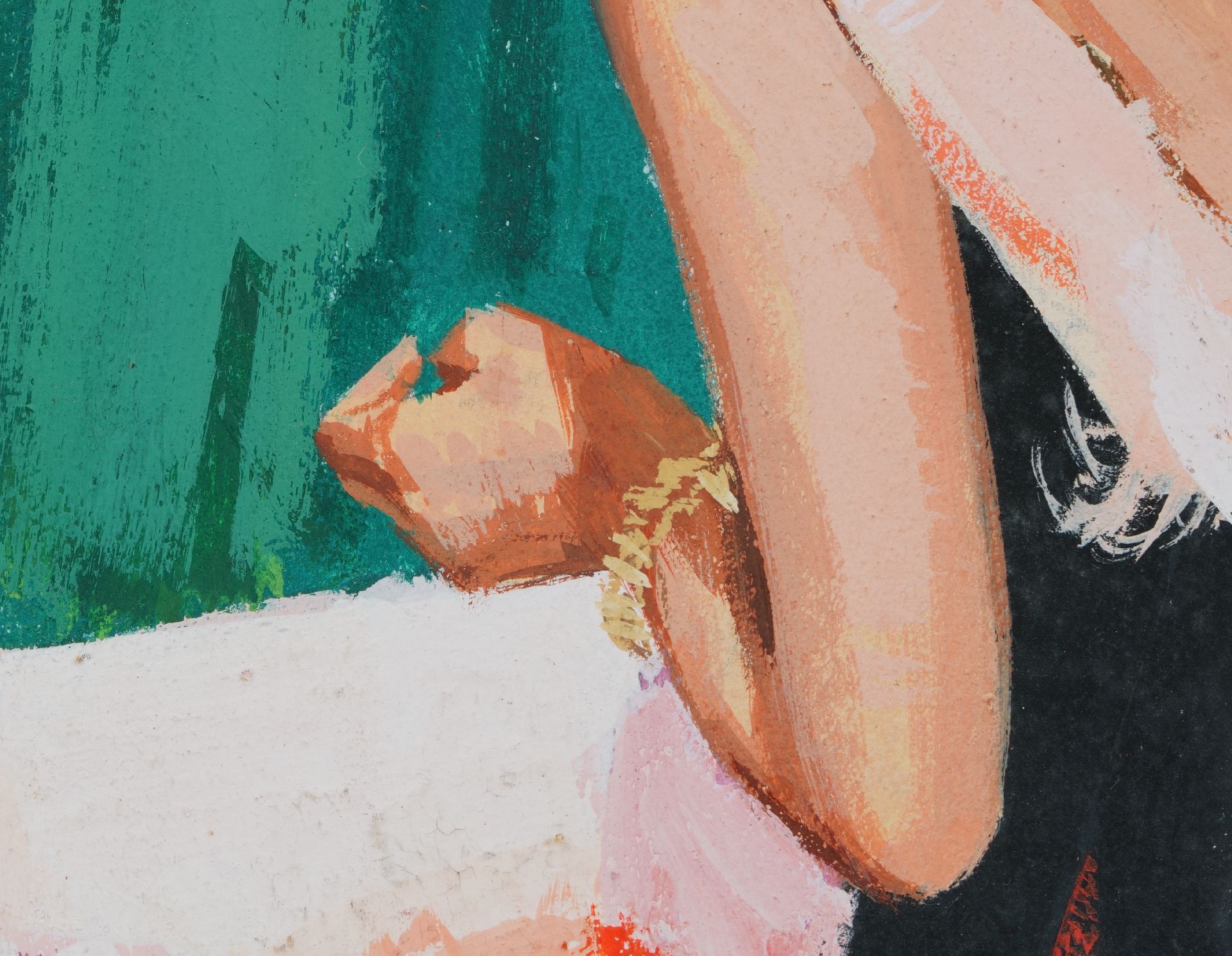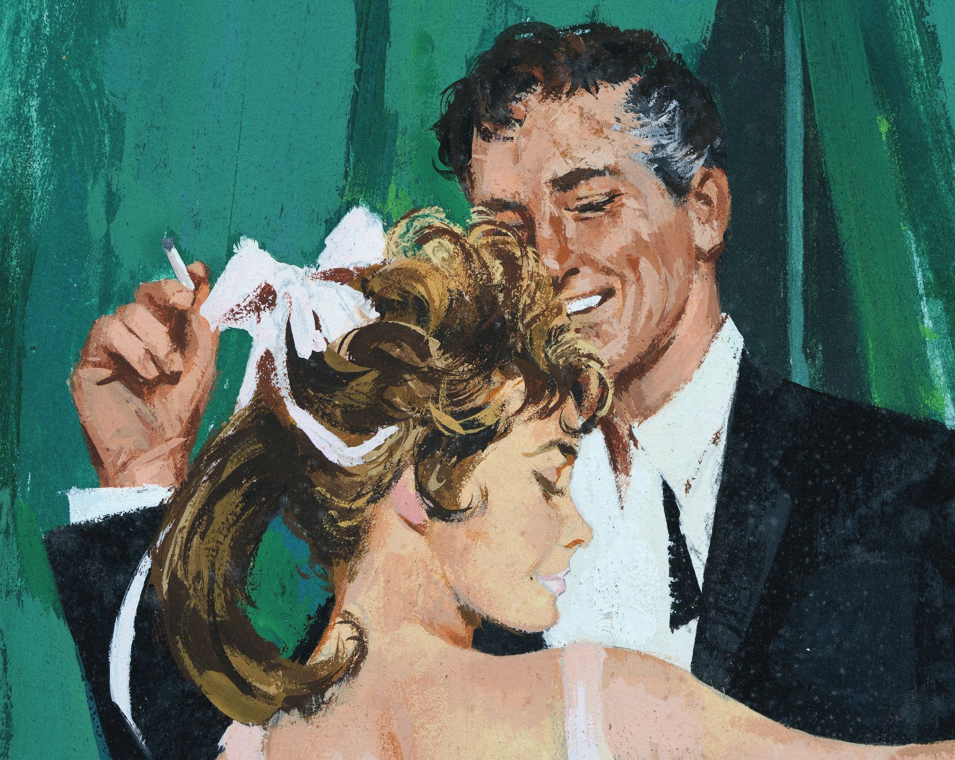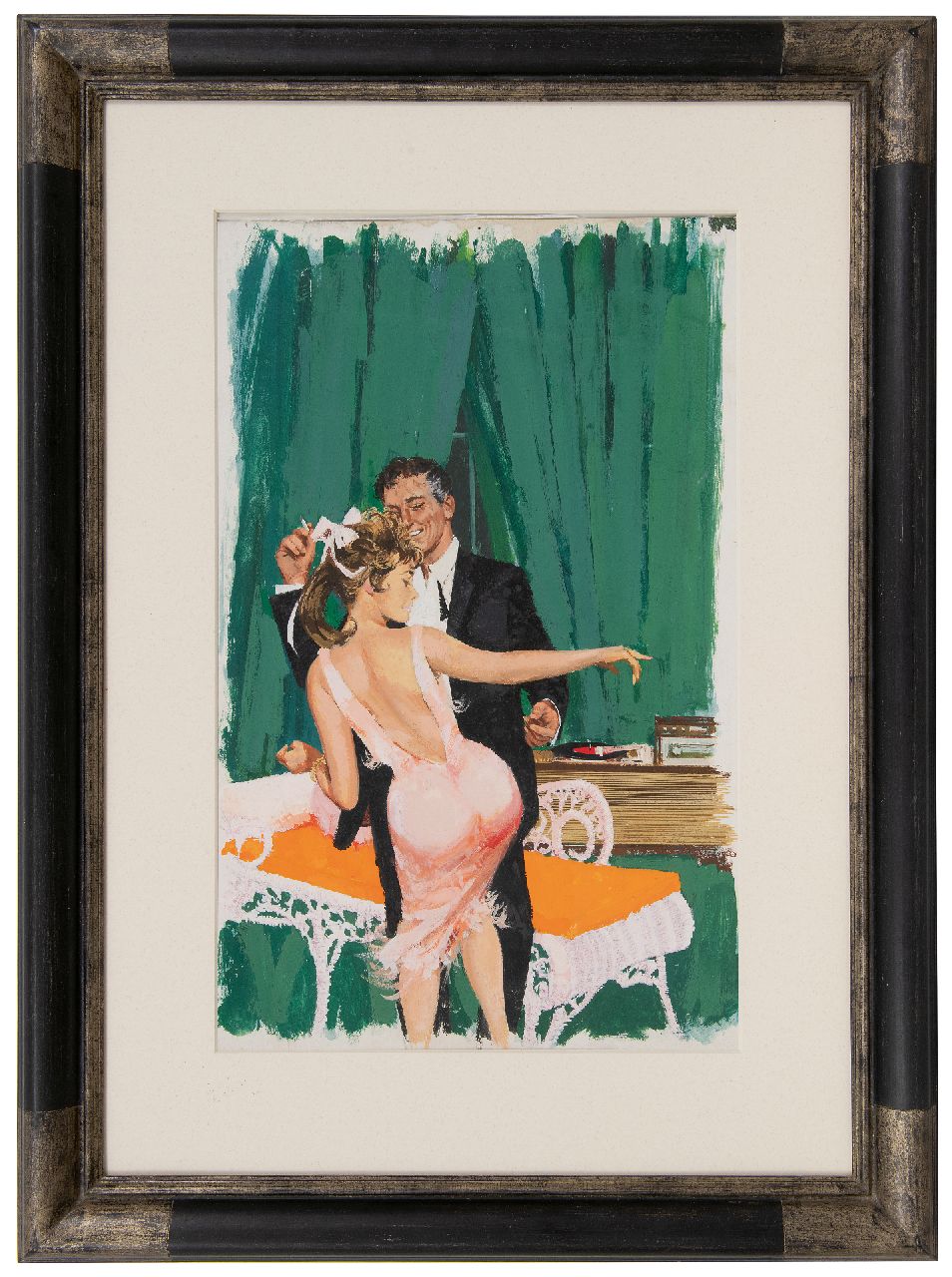 Deze gouache behoorde tot de collectie van de Amerikaanse kunstverzamelaar Charles Martignette (1950-2005); de voorstelling werd in 1962 gebruikt als paperbackomslag van 'The Sex Twist' door John Carver, Beacon Books nr. 559F. Martignette verzamelde vanaf 1970 schilderijen en gouaches die als voorbeeld dienden voor illustraties en omslagen van Amerikaanse tijdschriften, kalenders en paperbacks. Het merendeel van zijn collectie besloeg de ‘golden age’ van de Amerikaanse illustratiekunst en ‘pinup art’: van ca. 1910 tot in de jaren ’60. Samen met Louis K. Meisel schreef hij de naslagwerken 'The Great American Pin-Up' en 'Gil Elvgren: All His Glamorous American Pin-Ups'.