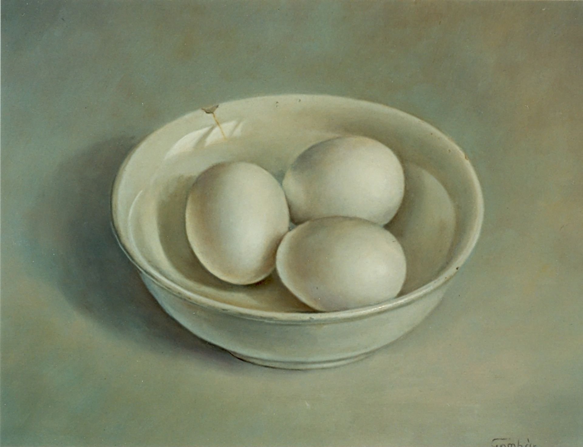 Andras Gombar kunstwerk • schilderij • voorheen te koop Schaaltje met eieren