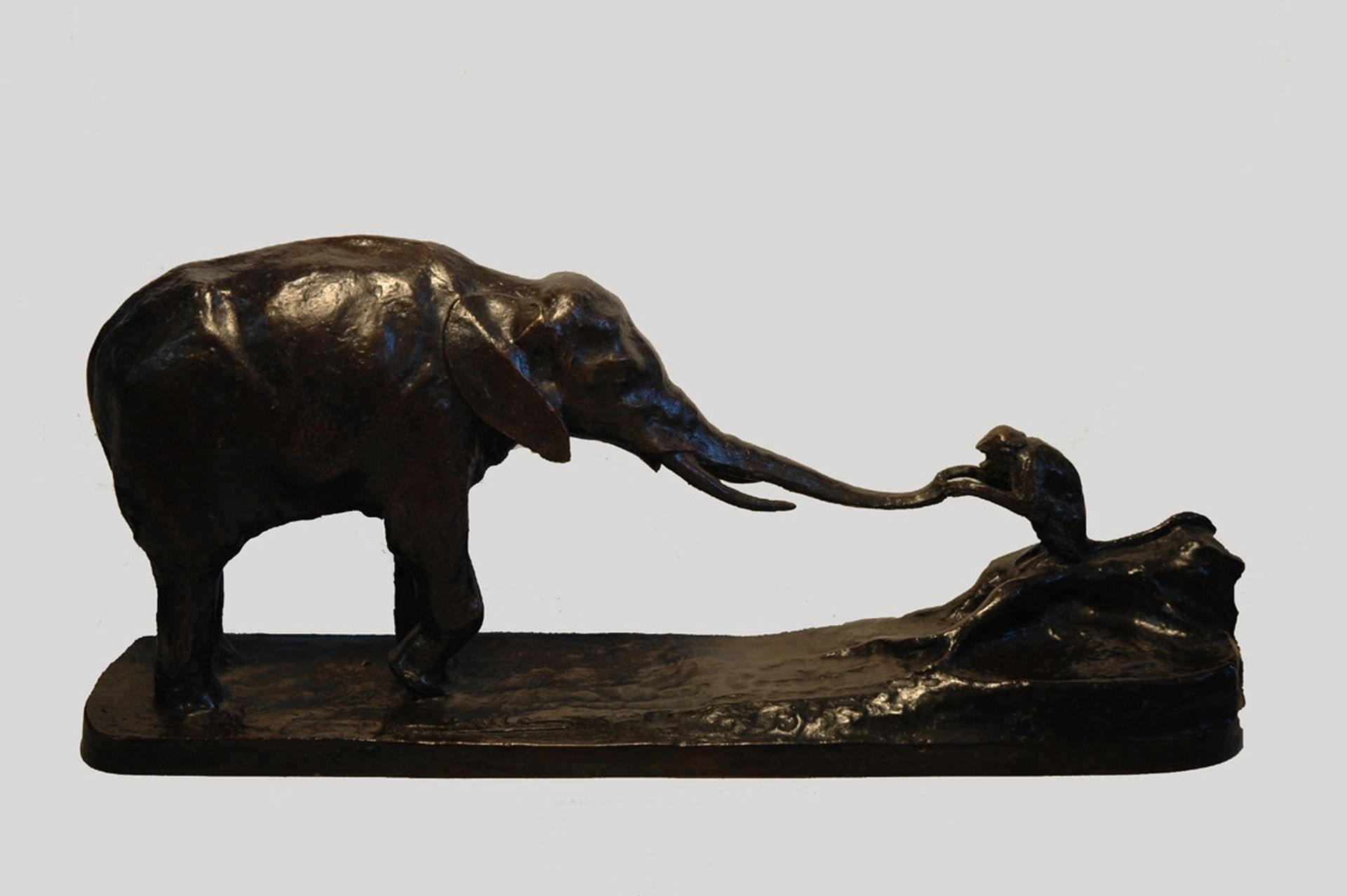 André Augustin Sallé kunstwerk • beeld • sculptuur • voorheen te koop Olifant met aapje