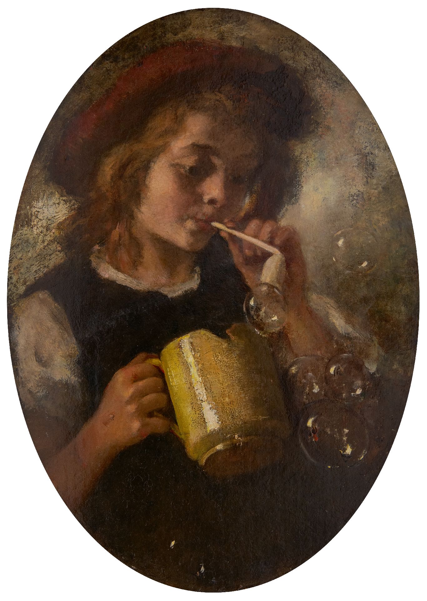 André Broedelet kunstwerk • schilderij • te koop Bellenblazende jongen